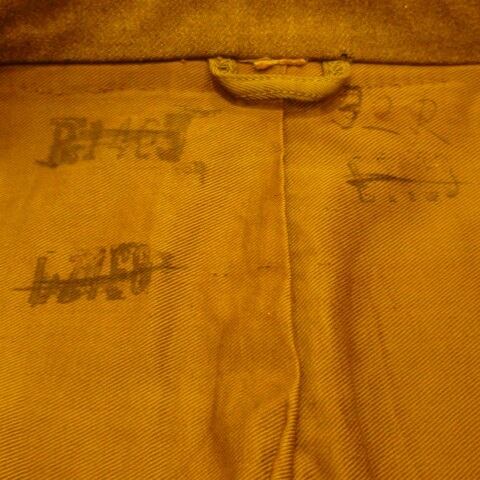 ■コンディション:1.上から4番目ボタンがとれています。2.裏地左袖付け根部分が画像のように解れています。3.左ポケットの最下部に画像のようなダメージがあります。4.前部最下部ボタン付近のステッチが画像のように解れています。5.左襟裏縫い目が画像のように補修されています。6.左襟の縫い目が画像のように解れかけています。7.数点点状の虫食い箇所があります。