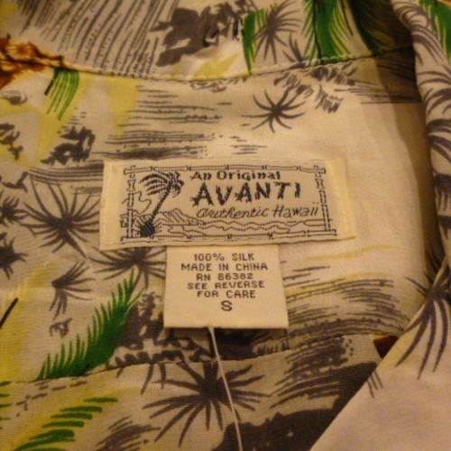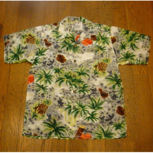 デッドストックです!シルクのハワイアンシャツ ■カラー:ヤシの木、パイナップル、ハイビスカス、他 ■サイズ:表示 S(肩幅45cm、身幅55cm、着丈72cm、袖丈25cm、首周り42cm)多少の誤差はご了承ください。 ■素材:SILK100% ■原産国:CHINA ■コンディション:美品 (デッドストック)