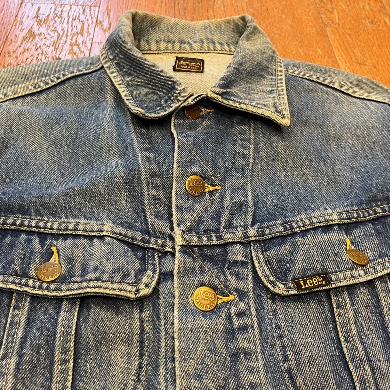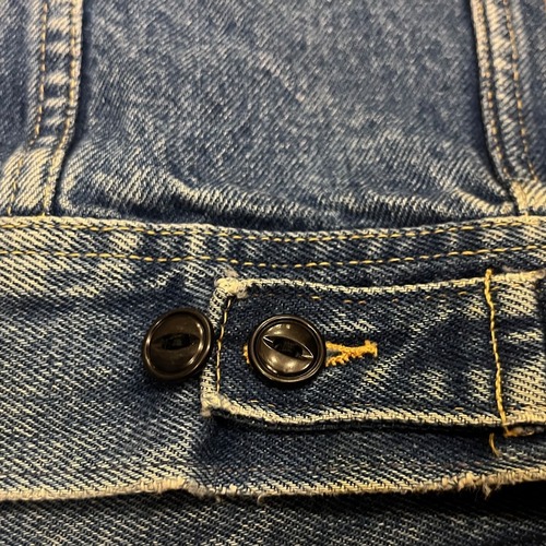 ■カラー:色落ちしたインディゴ ■サイズ:表示 なし(肩幅48cm、身幅53cm、着丈57cm、袖丈64cm)多少の誤差はご了承ください。 ■素材:コットン100% ■原産国:U.S.A ■コンディション:画像のようにタブ横に小さな穴があり裏側に名前が書かれていますが、他は古着並で大きな汚れやダメージはありません。