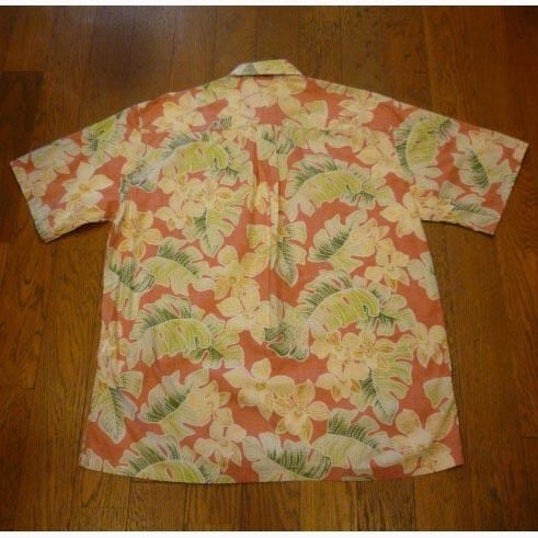 裏地使いです! クックストリートのハワイアンシャツ ■カラー:裏地使いのピンク地に植物柄 ■サイズ:表示 L(肩幅52cm、身幅62cm、着丈78cm、袖丈28cm、首周り42cm)多少の誤差はご了承ください。 ■素材:コットン100% ■原産国:CAMBODIA ■コンディション:古着並で目に付く汚れやダメージはありません。