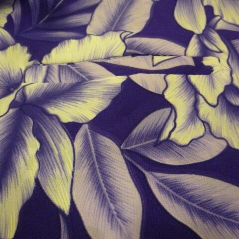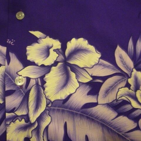綺麗な花柄です! ハワイアンフレーバーのアロハ ■カラー:濃いパープル地に花柄 ■サイズ:表示 L(肩幅47cm、身幅58cm、着丈74cm、袖丈26cm)多少の誤差はご了承ください。 ■素材:ポリエステル100% ■原産国:U.S.A ■コンディション:古着並で目に付く汚れやダメージはありません。