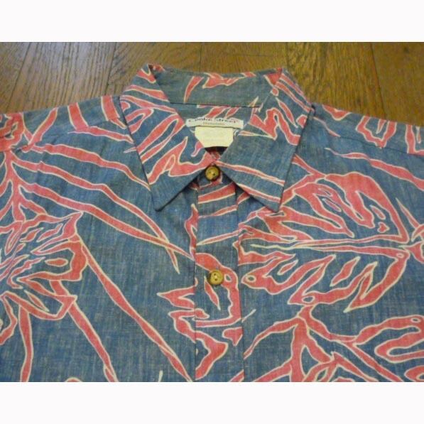 裏地使いです! クックストリートのハワイアンシャツ ■カラー:裏地使いのパープル地にピンクの柄 ■サイズ:表示 XL(肩幅50cm、身幅64cm、着丈74cm、袖丈26cm、首周り43cm)多少の誤差はご了承ください。 ■素材:コットン100% ■原産国:U.S.A ■コンディション:古着並で目に付く汚れやダメージはありません。