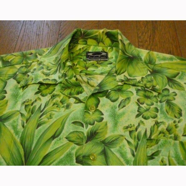 MADE IN JAPAN ロングポイントです! 70年代のハワイアンシャツ ■カラー:グリーン系の植物柄 ■サイズ:表示 M(肩幅45cm、身幅55cm、着丈70cm、袖丈26.5cm、首周り37cm)多少の誤差はご了承ください。 ■素材:コットン100% ■原産国:JAPAN ■コンディション:襟元に画像のような擦り切れがありますが、他は古着並で目に付く汚れやダメージはありません。