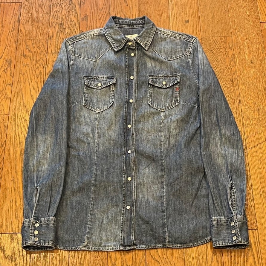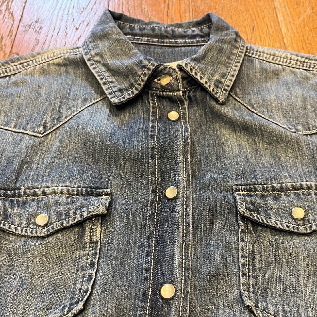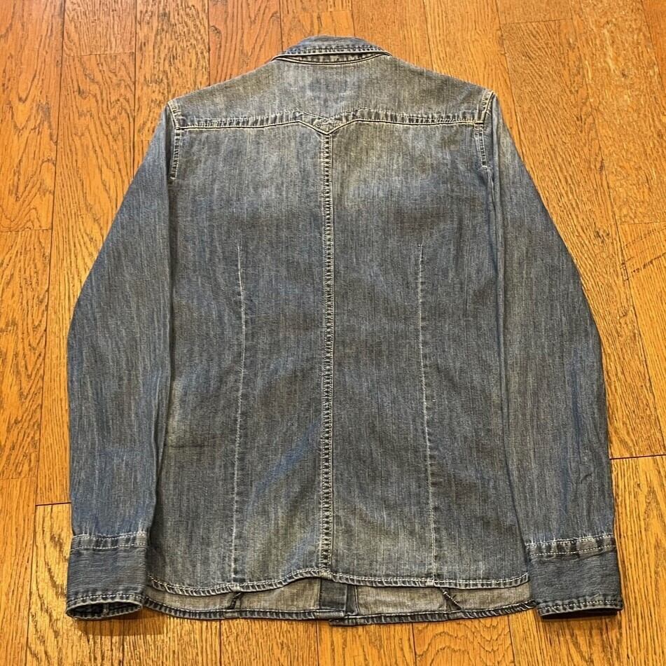 ■カラー:中古加工インディゴ ■サイズ:表示 SMALL(肩幅38cm、身幅44cm、着丈64cm、袖丈62cm)多少の誤差はご了承ください。 ■素材:コットン100% ■原産国:CHINA ■コンディション:ステッチのリペア(?)箇所が数点ありますが、他は古着並で大きな汚れやダメージはありません。