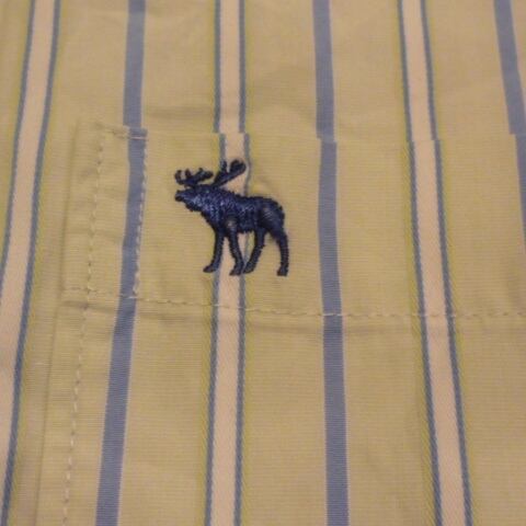 爽やか系のストライプです! アバクロの長袖シャツ ■カラー:黄色がかったベージュ地にブルーと白のストライプ ■サイズ:表示 M(肩幅44cm、身幅55cm、着丈73cm、袖丈72cm、首周り40cm)多少の誤差はご了承ください。 ■素材:コットン100% ■原産国:MAURITIUS ■コンディション:古着並で目に付く汚れやダメージはありません。