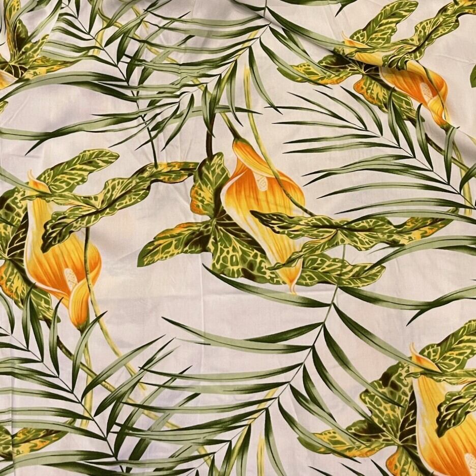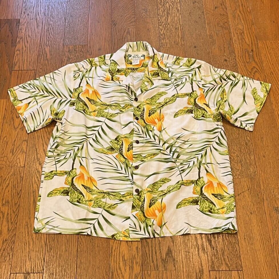 ■カラー:白地に植物柄 ■サイズ:表示 L(肩幅49cm、身幅60cm、着丈70cm、袖丈24cm)多少の誤差はご了承ください。 ■素材:RAYON 100% ■原産国:HAWAII ■コンディション:古着並で目に付く汚れやダメージはありません。