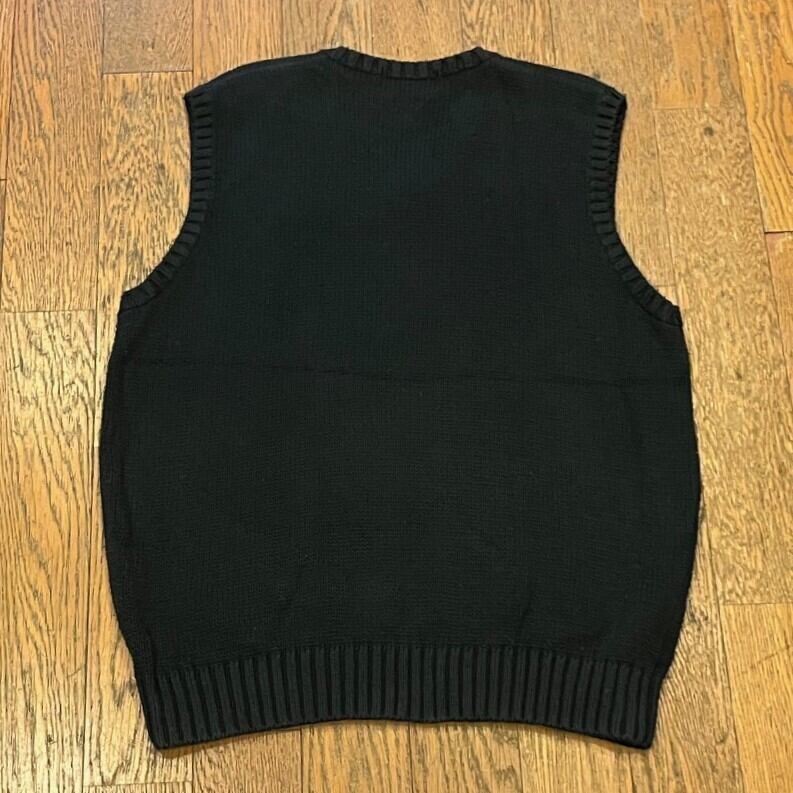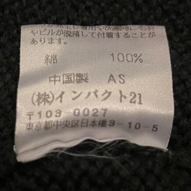 ■カラー:ブラック ■サイズ:表示 LL(肩幅49cm、身幅50cm、着丈65cm)多少の誤差はご了承ください。 ■素材:コットン100% ■原産国:CHINA (株)インパクト21 ■コンディション:多少毛玉が出ていますが、古着並で目に付く汚れやダメージはありません。