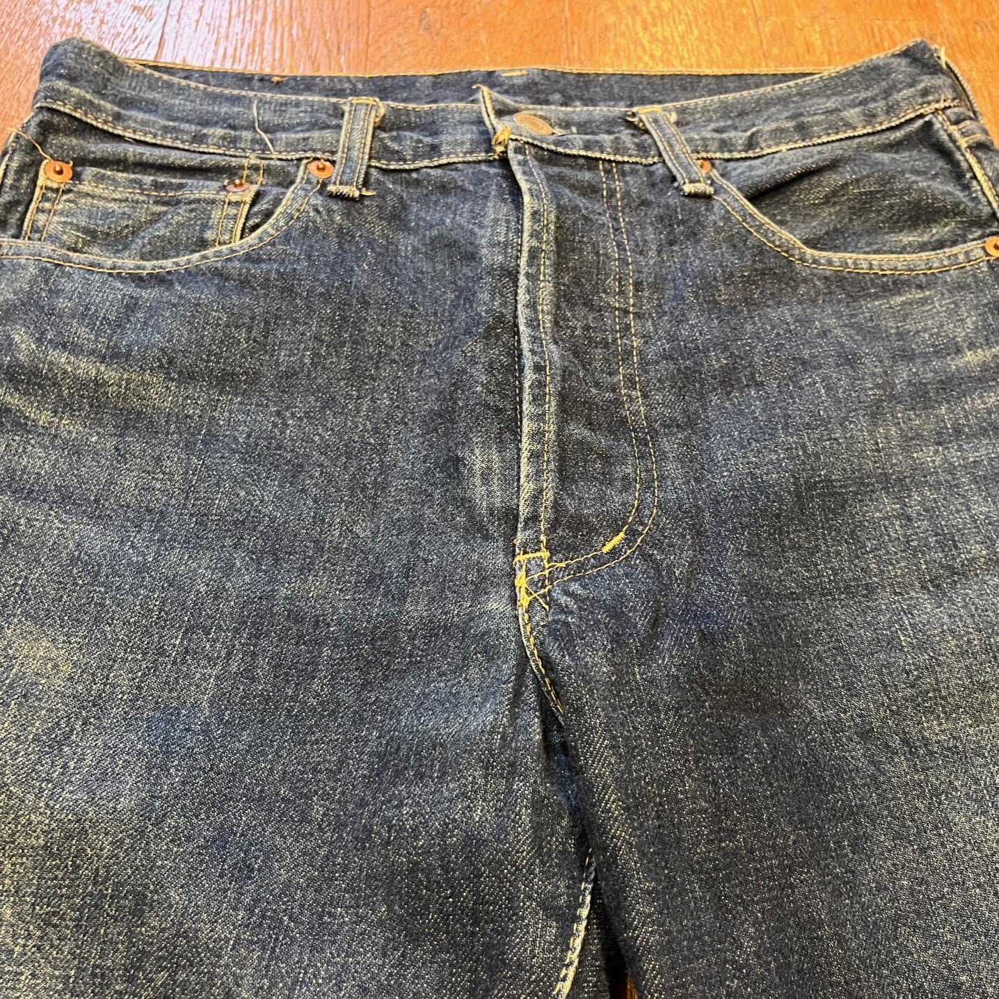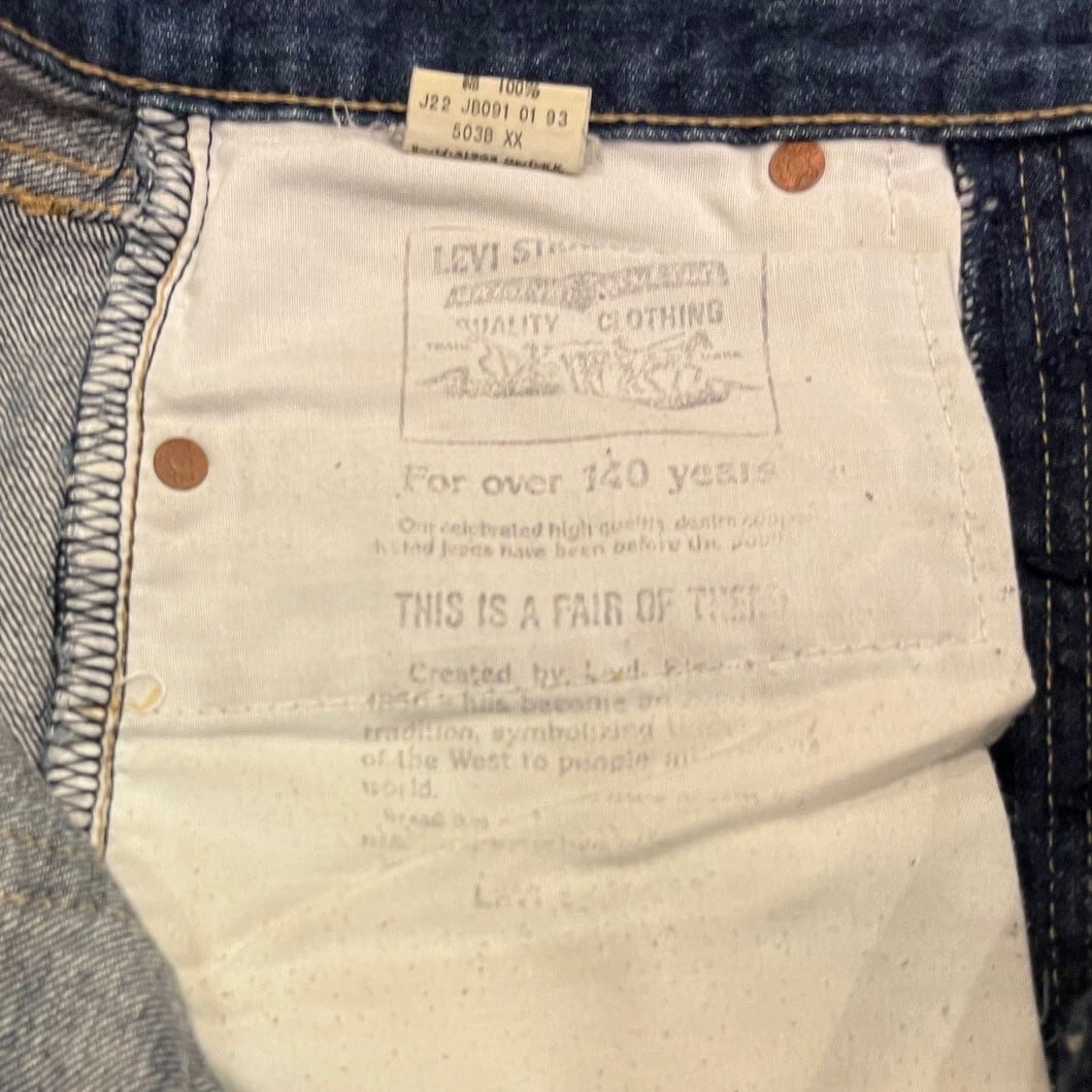 ■カラー:インディゴ ■サイズ:表示 W31.L34(実寸ウエスト76cm、股下75cm、股上30cm、股幅29cm、裾幅21cm)多少の誤差はご了承ください。 ■素材:コットン100% ■原産国:JAPAN (リーバイ.ストラウスジャパン K.K.) ■コンディション:左足膝付近に画像のようなダメージがあり、かかと部分が多少擦り切れていますが、他は古着並で大きな汚れやダメージはありません。
