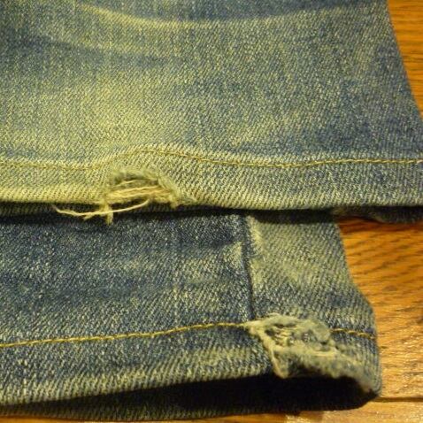 ■コンディション:股部分、両足裾内側ステッチ部分に画像のようなダメージがありますが、他は古着並で目に付く汚れやダメージはありません。