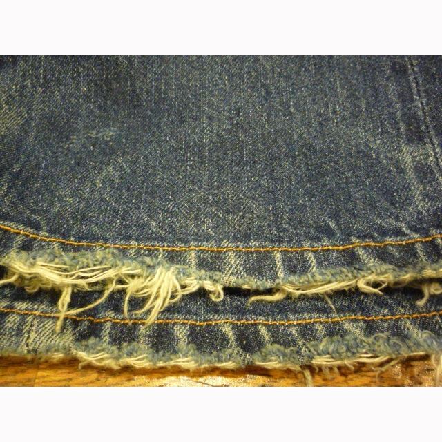 ■コンディション:画像のように両ひざがリペアされており両裾付近にダメージがありますが、他は古着並で目に付く汚れやダメージはありません。