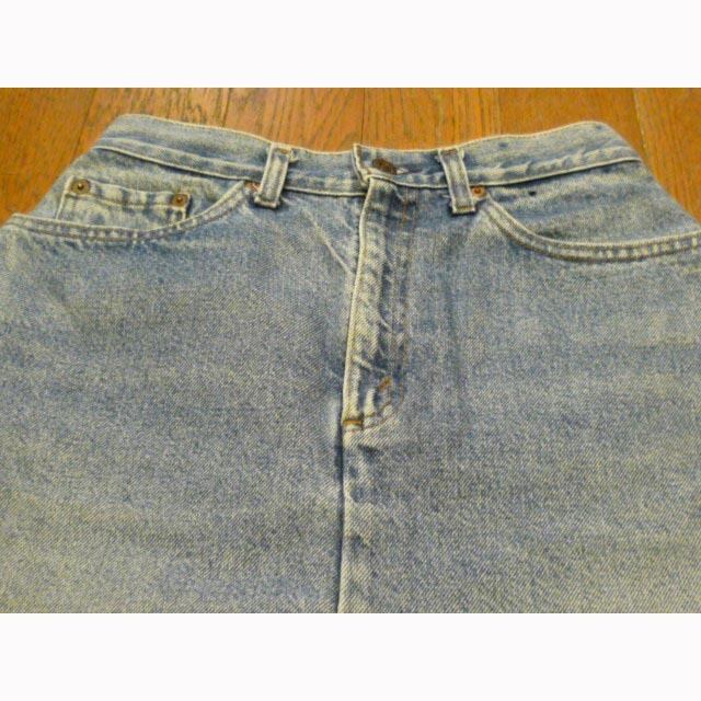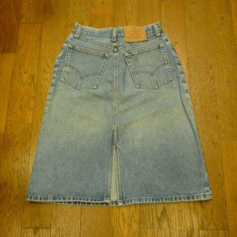 人気のひざ丈です! リーバイス98788-0214 デニムスカート ■カラー:薄いブルー ■サイズ:表示 W27.L25 (実寸ウエスト66cm、総丈63cm、ヒップ96cm、裾幅54cm、スリット18cm)多少の誤差はご了承ください。 ■素材:コットン100% ■原産国:U.S.A ■コンディション:古着並みで目に付く汚れやダメージはありません。