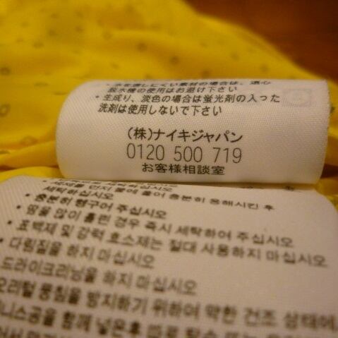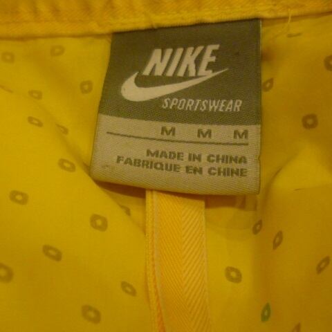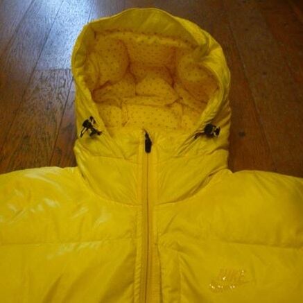 綺麗なイエローです!! ナイキ のダウンジャケット ■カラー:イエロー ■サイズ:表示 M(肩幅46cm、身幅58cm、着丈70cm、袖丈62cm)多少の誤差はご了承ください。 ■素材:本体:ナイロン100% 裏地:ポリエステル100% 中綿:ダウン90% フェザー10% ■原産国:CHINA (株)ナイキジャパン ■コンディション:古着並で目に付く汚れやダメージはありません。