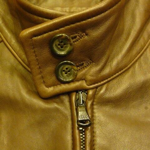 ■コンディション:全体的にまばらなレザー特有のシミ、特に右肩下付近は画像のように密集していますが他は古着並で大きな汚れやダメージはありません。