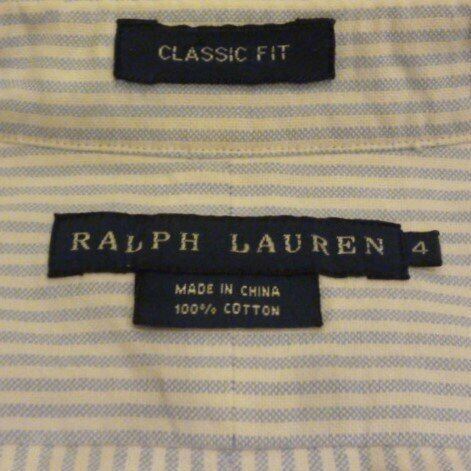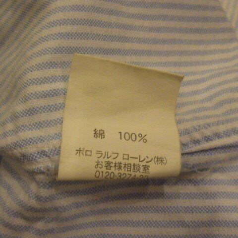 RALPH LAUREN CLASSIC FIT のB.D.シャツ ■カラー:ブルーと白のストライプ ■サイズ:表示 4 バスト83 身長160(肩幅41cm、身幅48cm、着丈66cm、袖丈58cm、首周り33cm)多少の誤差はご了承ください。 ■素材:コットン100% ■原産国:CHINA ポロ ラルフローレン(株) ■コンディション:古着並で目に付く汚れやダメージはありません。