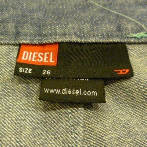 可愛いデザインです ! DIESEL デニムスカート ■カラー:インディゴ ■サイズ:表示 26 (実寸ウエスト66cm、総丈54cm、ヒップ92cm、裾幅50cm、左横ボタン下スリット18cm)多少の誤差はご了承ください。 ■素材:コットン100% ■原産国:MOROCCO (株式会社 パンドラ) ■コンディション:古着並みで目に付く汚れやダメージはありません。
