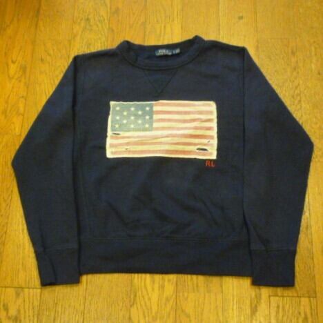 ■カラー:ネイビー ■サイズ:表示 SP (肩幅40cm、身幅49cm、着丈51cm、袖丈56cm)多少の誤差はご了承ください。 ■素材:コットン60% ポリエステル40% ■原産国:CHINA (ラルフローレン(株)) ■コンディション:胸の星条旗部分に画像のようなダメージがありますが、他は古着並で目に付く汚れやダメージはありません。
