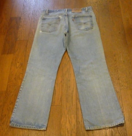 SCOVILLジッパーです ! LEvi's 517 ダメージジーンズ ■カラー:かなり薄いブルー ■サイズ:表示 W34.L32(実寸ウエスト84cm、股下73cm、股上31cm、股幅30cm、裾幅22cm)多少の誤差はご了承ください。 ■素材:コットン100% ■原産国:U.S.A ■コンディション:画像のようなダメージ、リペア箇所がありますが他は古着並で大きな汚れ等はありません。