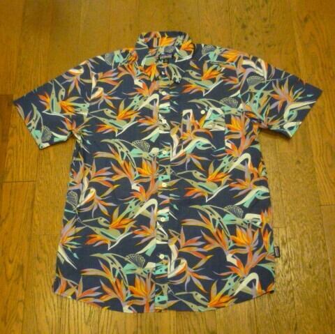 ■カラー:ネイビー地に植物柄 ■サイズ:表示 M (肩幅46cm、身幅53cm、着丈74cm、袖丈24cm、首周り43cm)多少の誤差はご了承ください。 ■素材:コットン60% ポリエステル40% ■原産国:CHINA (パタゴニア.インターナショナル.インク) ■コンディション:良好