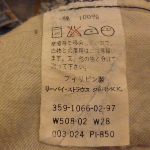 ■カラー:ブルー ■サイズ:表示 W28.L32(実寸ウエスト64cm、股下68cm、股上28cm、股幅25cm、裾幅18cm)多少の誤差はご了承ください。 ■素材:コットン100% ■原産国:フィリピン (リーバイ.ストラウスジャパン K.K.) ■コンディション:古着並で目に付く汚れやダメージはありません。
