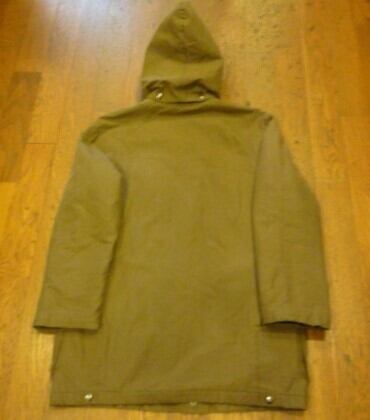 ■カラー:カーキ ■サイズ:表示 S(肩幅54cm、身幅59cm、着丈81cm、袖丈47cm(ラグランスリーブの為、わきの下から袖口までの長さ))多少の誤差はご了承ください。 ■素材:コットン100% LINING:コットン50% ポリエステル50% ■原産国:U.S.A ■コンディション:袖口が画像のように擦り切れていますが、他は古着並で目に付く汚れやダメージはありません。