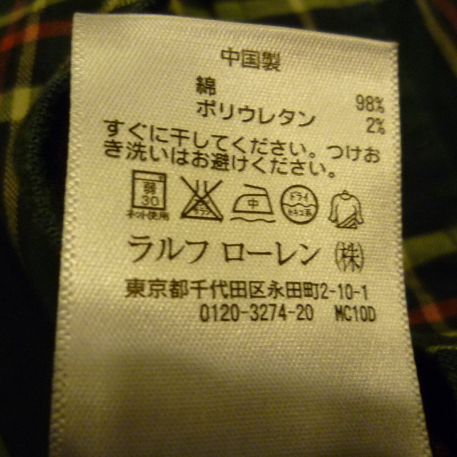 ■カラー:グリーン地に赤、白他チェック ■サイズ:表示 S 170/92A (肩幅44cm、身幅50cm、着丈74.5cm、袖丈62cm、首周り38cm)多少の誤差はご了承ください。 ■素材:コットン98% ポリウレタン2% ■原産国:CHINA (ラルフローレン(株)) ■コンディション:古着並で目に付く汚れやダメージはありません。