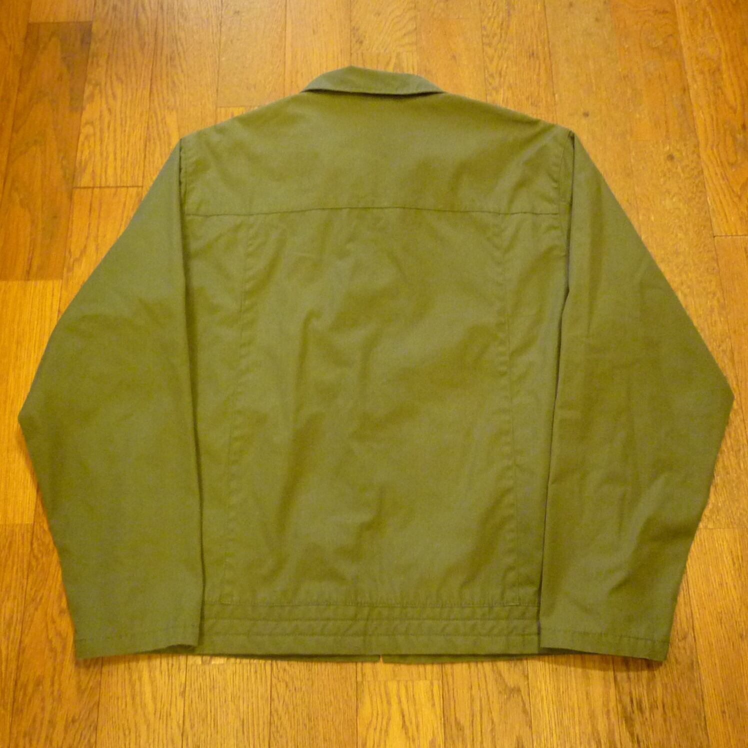 ■カラー:カーキ ■サイズ:表示 M/M(肩幅50cm、身幅60cm、着丈69cm、袖丈65cm)多少の誤差はご了承ください。 ■素材:SHELL:コットン35% ポリエステル65% BODY LINING:コットン100% SLEEVE LINING:ナイロン100% ■原産国:BANGLADESH ■コンディション:古着並で目に付く汚れやダメージはありません。