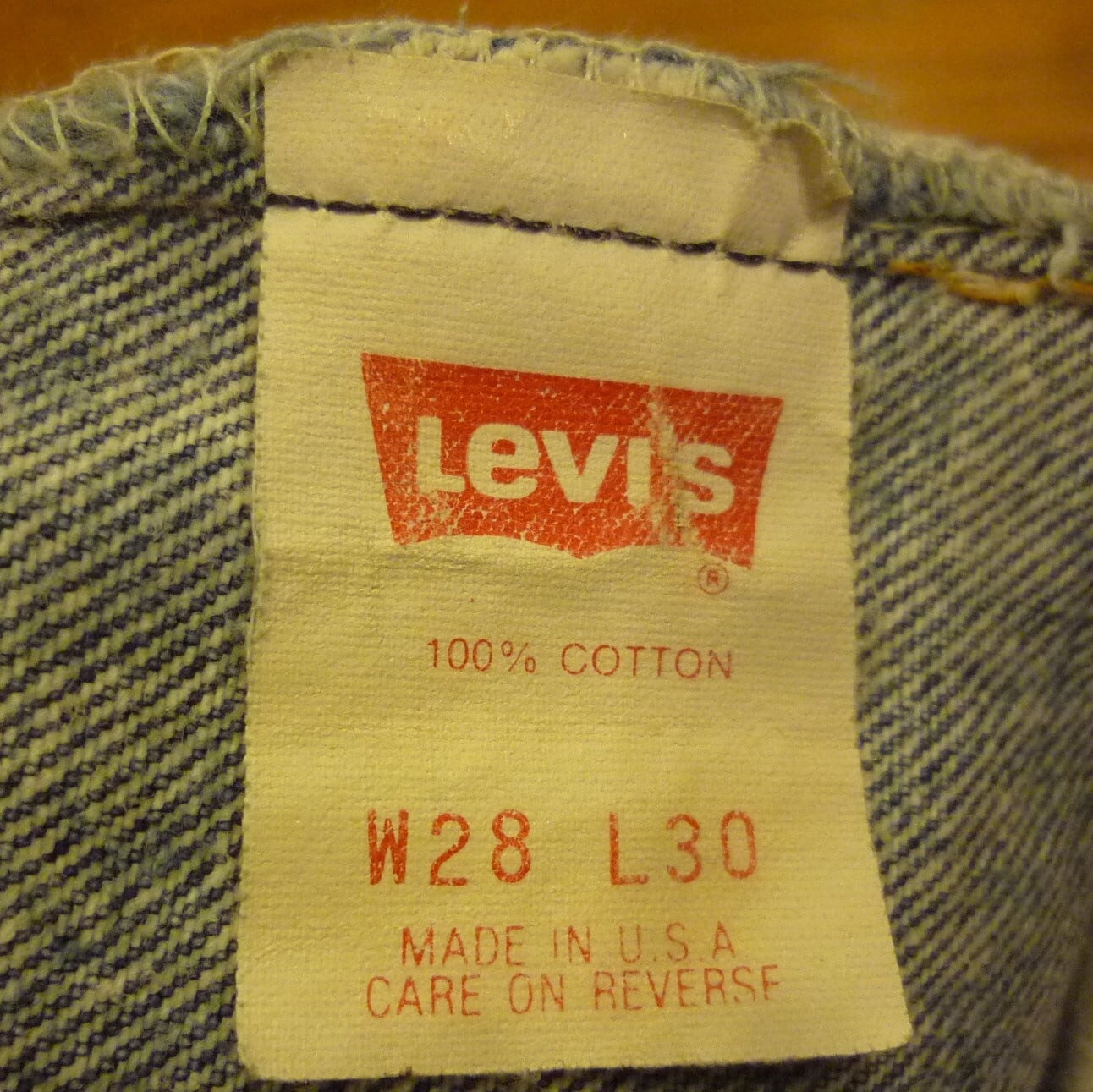 ■カラー:ブルー ■サイズ:表示 W28.L30(実寸ウエスト71cm、股下74cm、股上28cm、股幅26cm、裾幅18cm)多少の誤差はご了承ください。 ■素材:コットン100% ■原産国:U.S.A ■コンディション:古着並で目に付く汚れやダメージはありません。