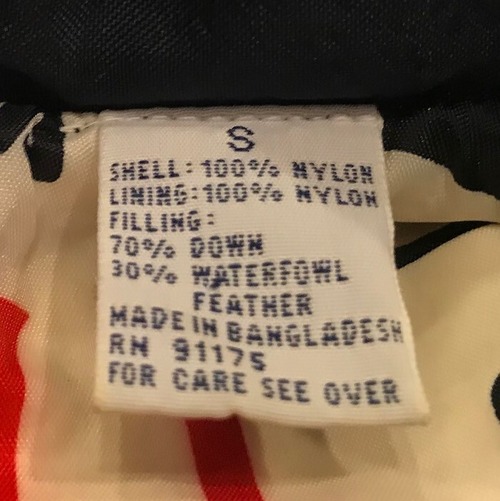■カラー:ネイビー ■サイズ:表示 S (肩幅46cm、身幅58cm、着丈66cm)多少の誤差はご了承ください。 ■素材:SHELL:NYLON100% LINING: NYLON100% FILLining:DOWN70% WATERFOWL FEATHER30% ■原産国:BANGLADESH ■コンディション:古着並で大きな汚れやダメージはありません。