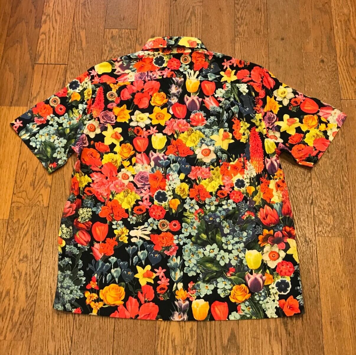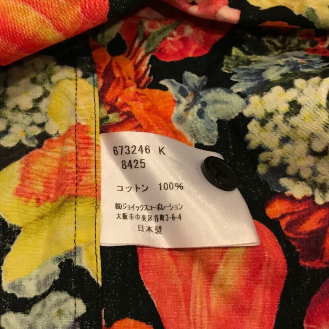 ■カラー:黒地にオレンジ、ピンク、イエロー、レッド、他花柄 ■サイズ:表示 XL(肩幅47cm、身幅55cm、着丈69cm、袖丈25cm、首周り41cm)多少の誤差はご了承ください。 ■素材:コットン100% ■原産国:JAPAN (株)ジョイックスコーポレーション ■コンディション:古着並で目に付く汚れやダメージはありません。