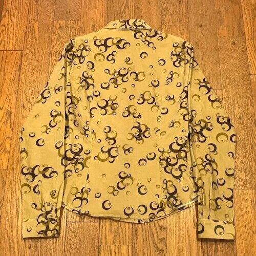 タイトなデザインです ! ■カラー:ベージュ地に柄 ■サイズ:表示 M(肩幅41cm、身幅45cm、着丈60cm、袖丈60cm、首周り39cm)多少の誤差はご了承ください。 ■素材:コットン97% spandex3% (ストレッチ素材) ■原産国:U.S.A ■コンディション:古着並で目に付く汚れやダメージはありません。