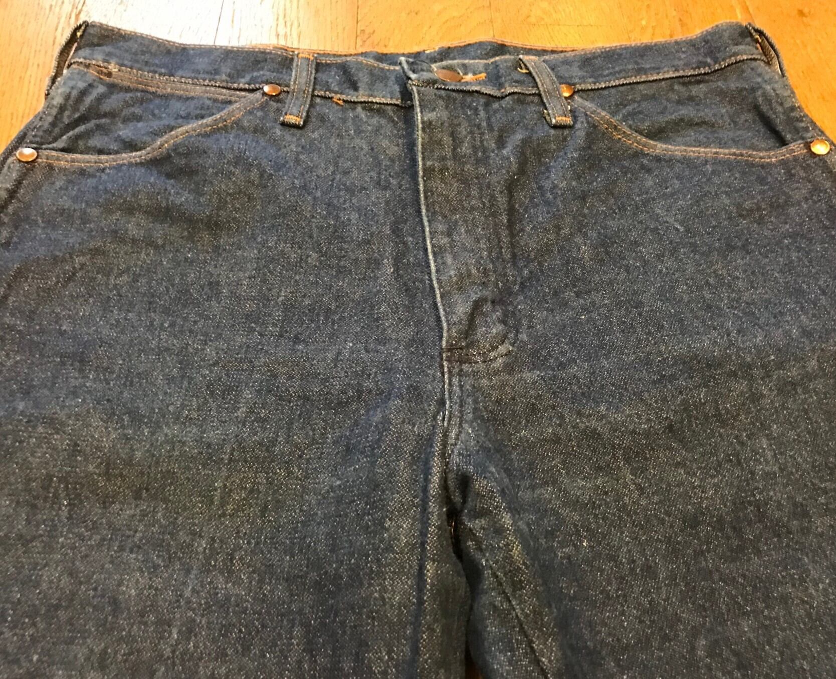 ■カラー:インディゴ ■サイズ:表示 W34.L31(実寸ウエスト84cm、股下78cm、股上31cm、股幅30cm、裾幅21cm)多少の誤差はご了承ください。 ■素材:コットン100% ■原産国:U.S.A ■コンディション:古着並で目に付く汚れやダメージはありません。