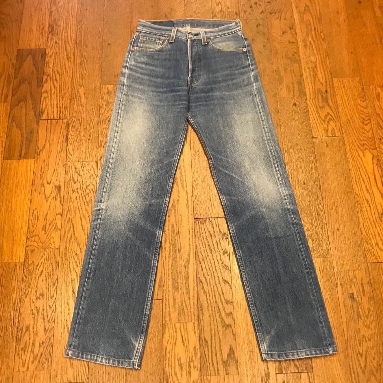 ■カラー:ひげ落ちブルー ■サイズ:表示 W28.L36(実寸ウエスト66cm、股下80cm、股上27cm、股幅26cm、裾幅18.5cm)多少の誤差はご了承ください。 ■素材:コットン100% ■原産国:U.S.A ■コンディション:後部右ポケットに画像のようなダメージがありますが、他は古着並で目に付く汚れやダメージはありません。
