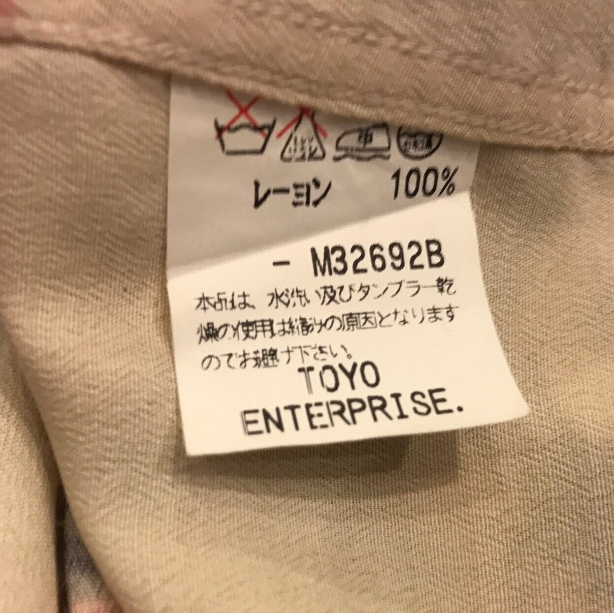 ■カラー:ベージュ地に和柄 ■サイズ:表示 M(肩幅47cm、身幅51cm、着丈73cm、袖丈23cm)多少の誤差はご了承ください。 ■素材:レーヨン100% ■原産国:表記はありませんが国内ブランドです。 ■コンディション:タブ部分に画像のような黒い汚れがありますが、他は古着並で目に付く汚れやダメージはありません。