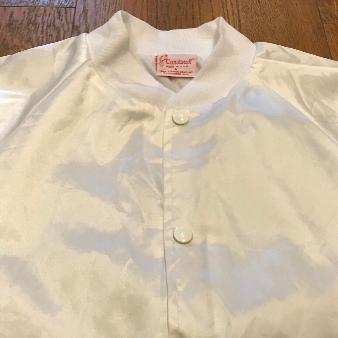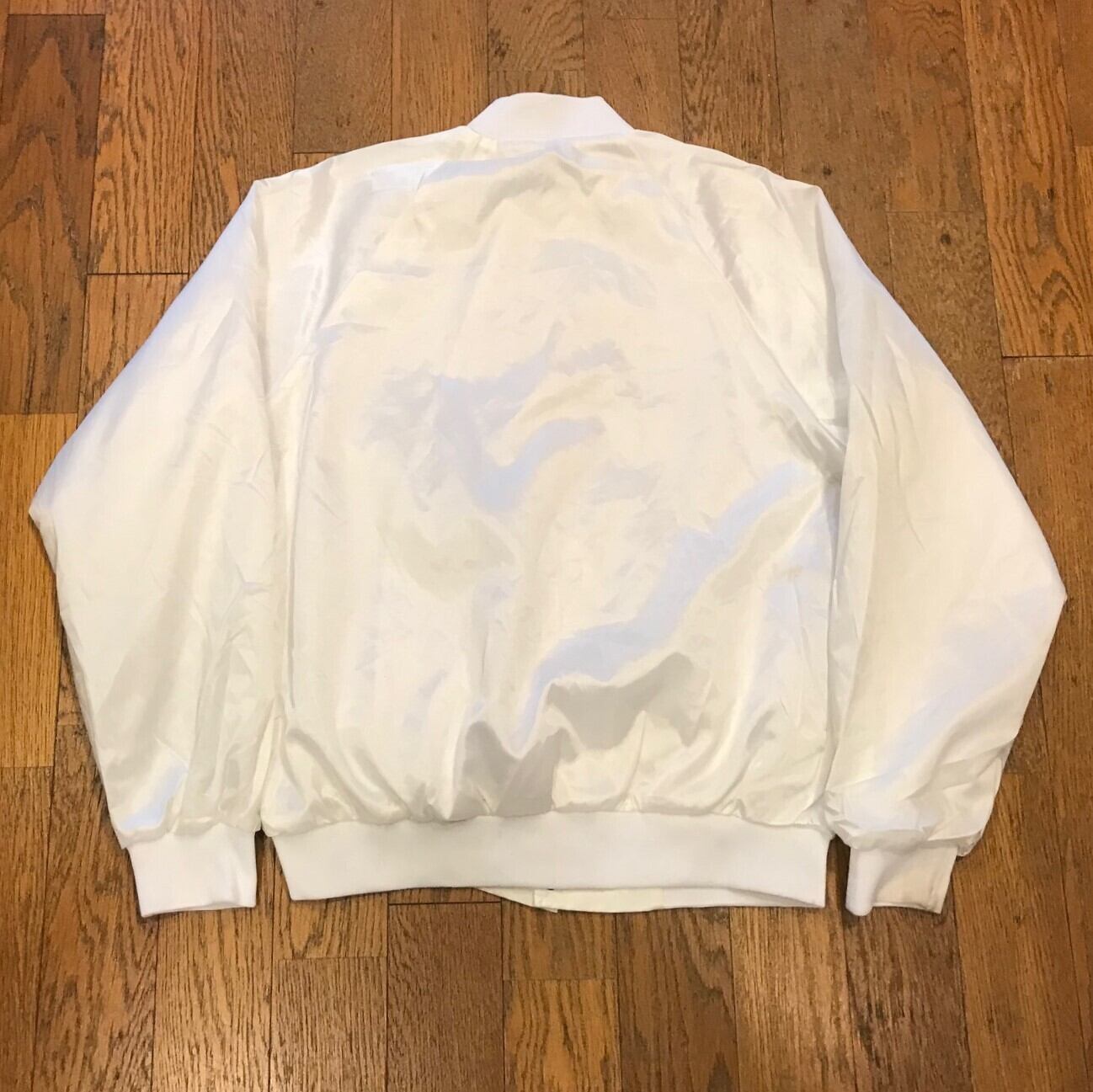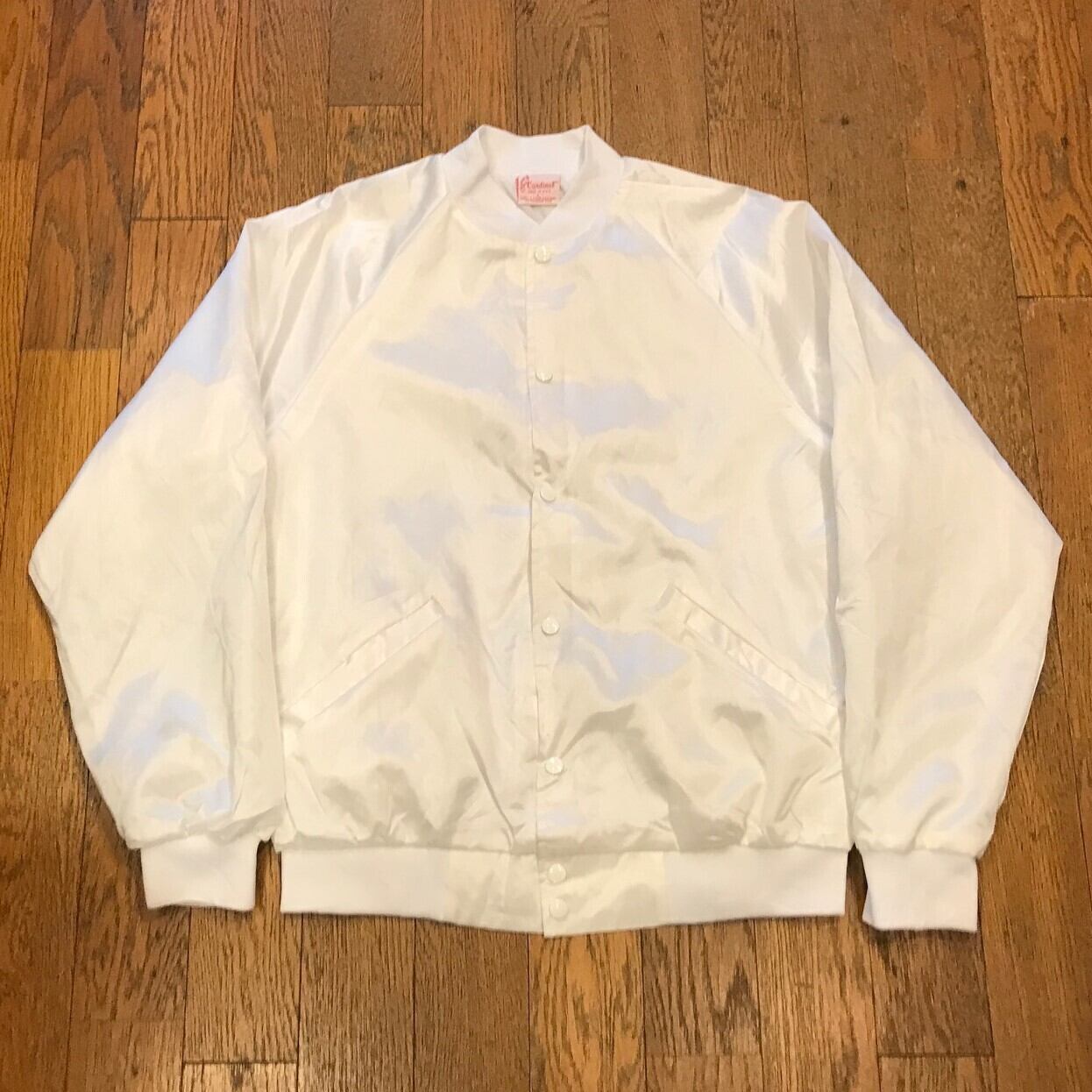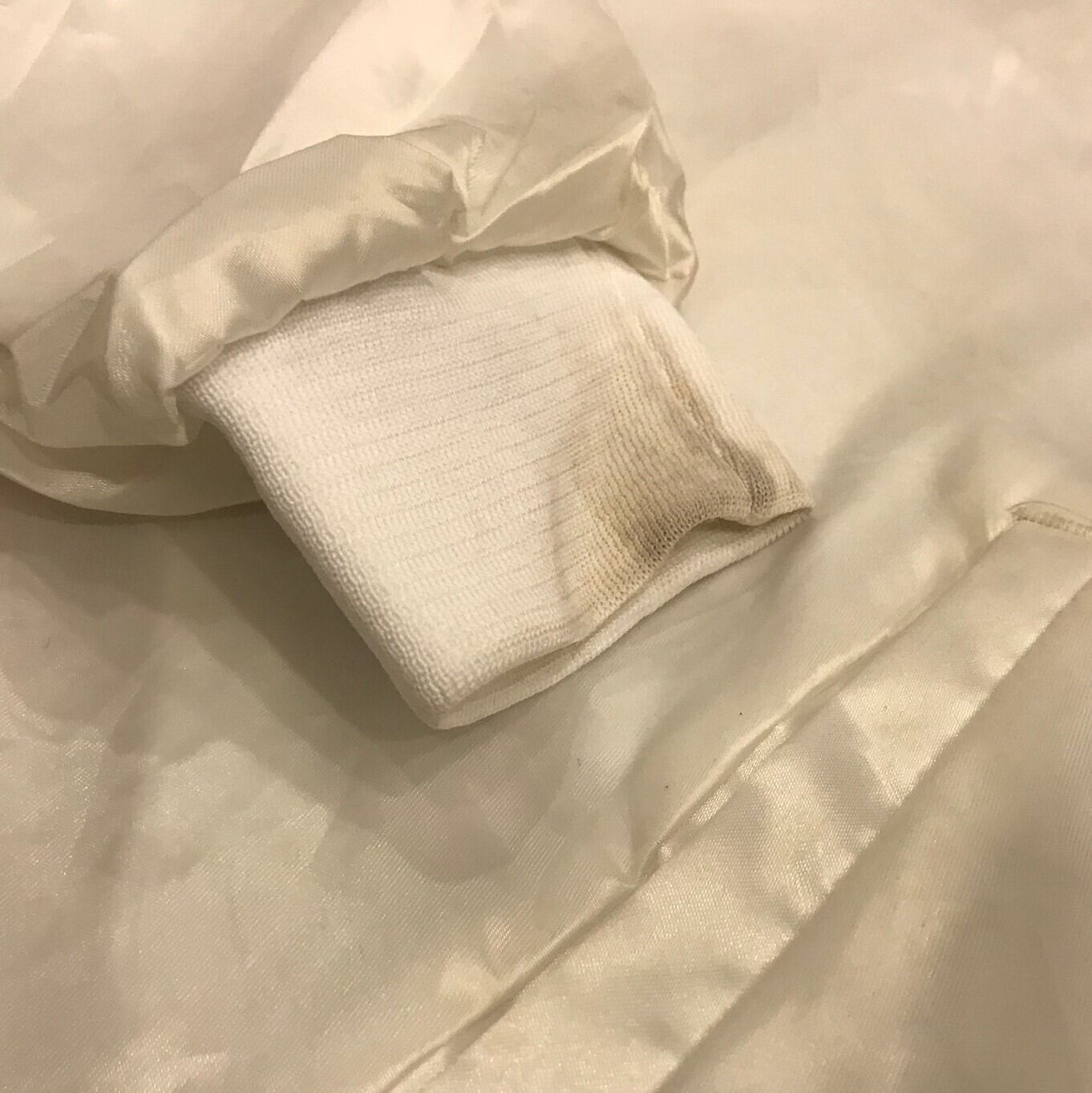 ■カラー:ホワイト ■サイズ:表示 L(肩幅50cm、身幅60cm、着丈66cm、袖丈52cm(ラグランスリーブの為、わきの下から袖口までの長さ))多少の誤差はご了承ください。 ■素材:SHELL:ナイロン100% LINING:ポリエステル100% ■原産国:U.S.A ■コンディション:右袖リブ部分に画像のような汚れ箇所がありますが、他は古着並で目に付く汚れやダメージはありません。
