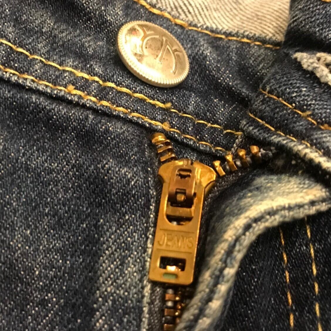 ■カラー:インディゴ ■サイズ:表示 確認できません。(実寸ウエスト78cm、股下69cm、股上24cm、股幅28cm、裾幅17.5cm)多少の誤差はご了承ください。 ■素材:コットン ■原産国:JAPAN ■コンディション:古着並で大きな汚れやダメージはありません。
