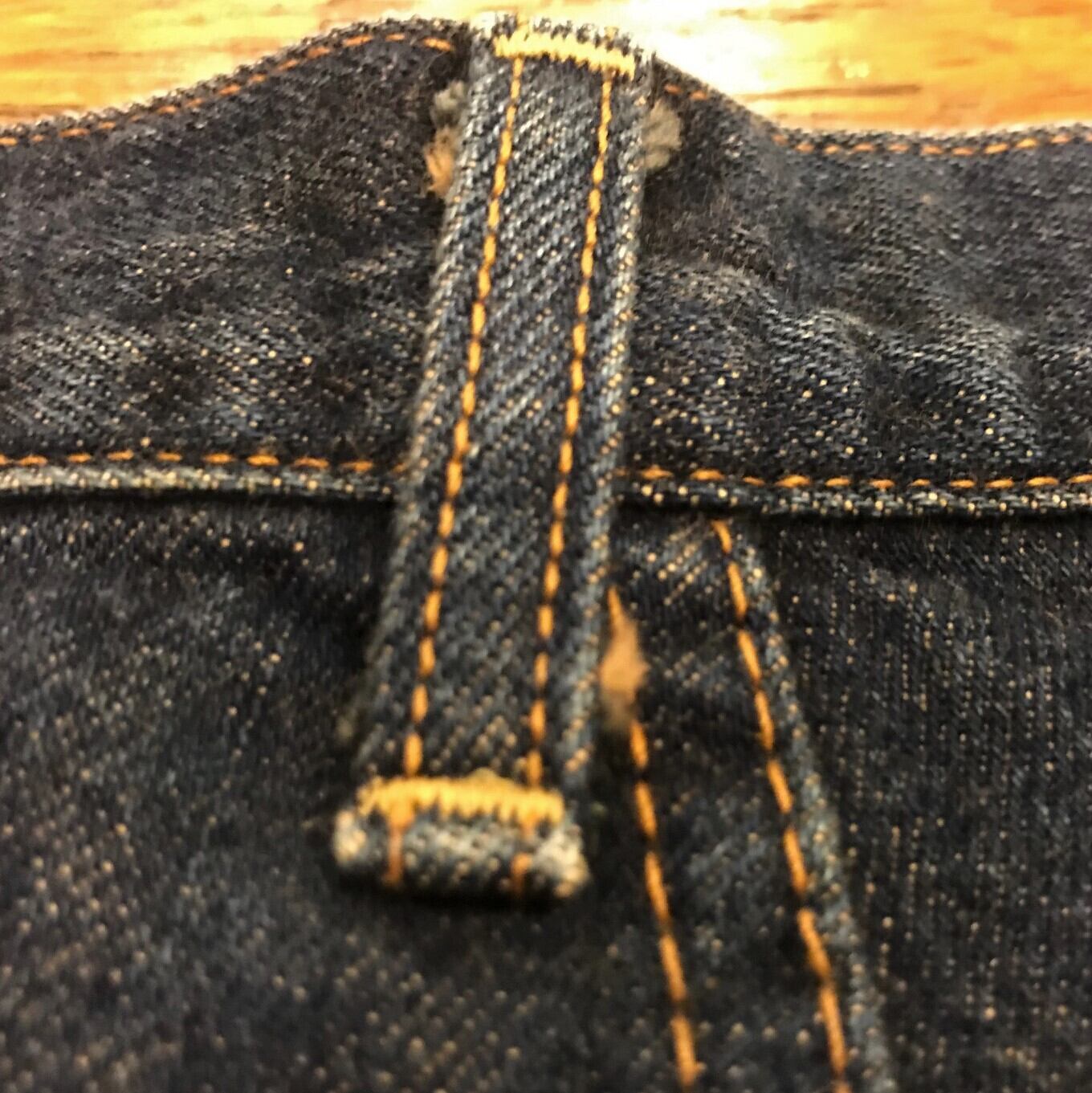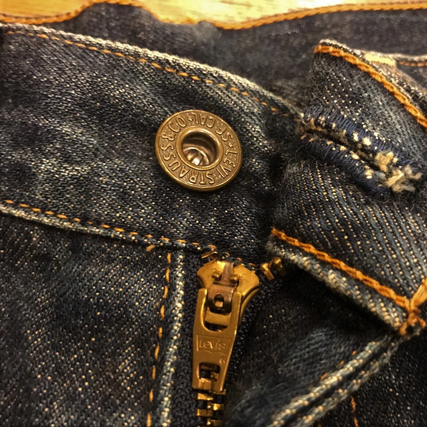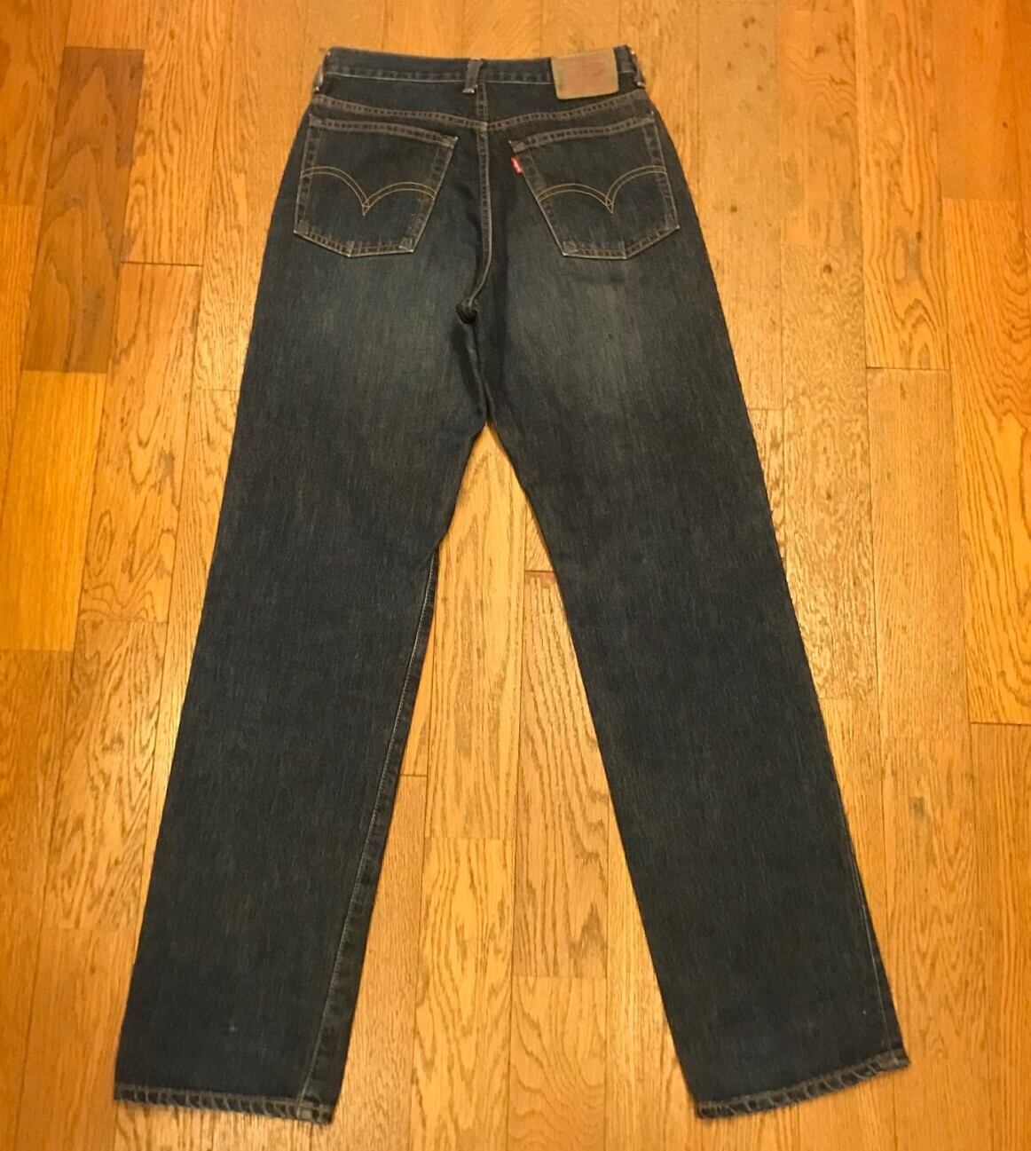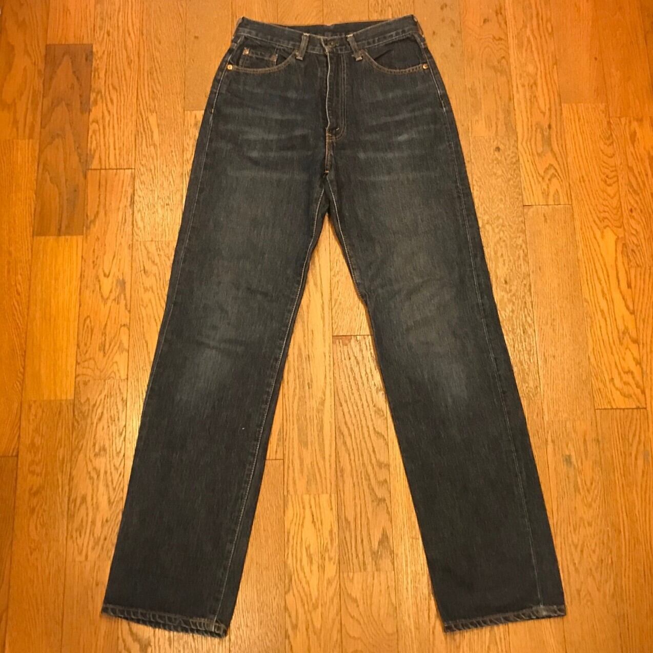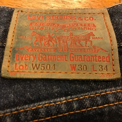 90年代製のレビューデニムパンツをご紹介します。ブランド定番の501と比べて、腰回りがややゆるく、脚釦が細めでシルエットがすっきりとしたW504-00。ユーズド感がたまりません。