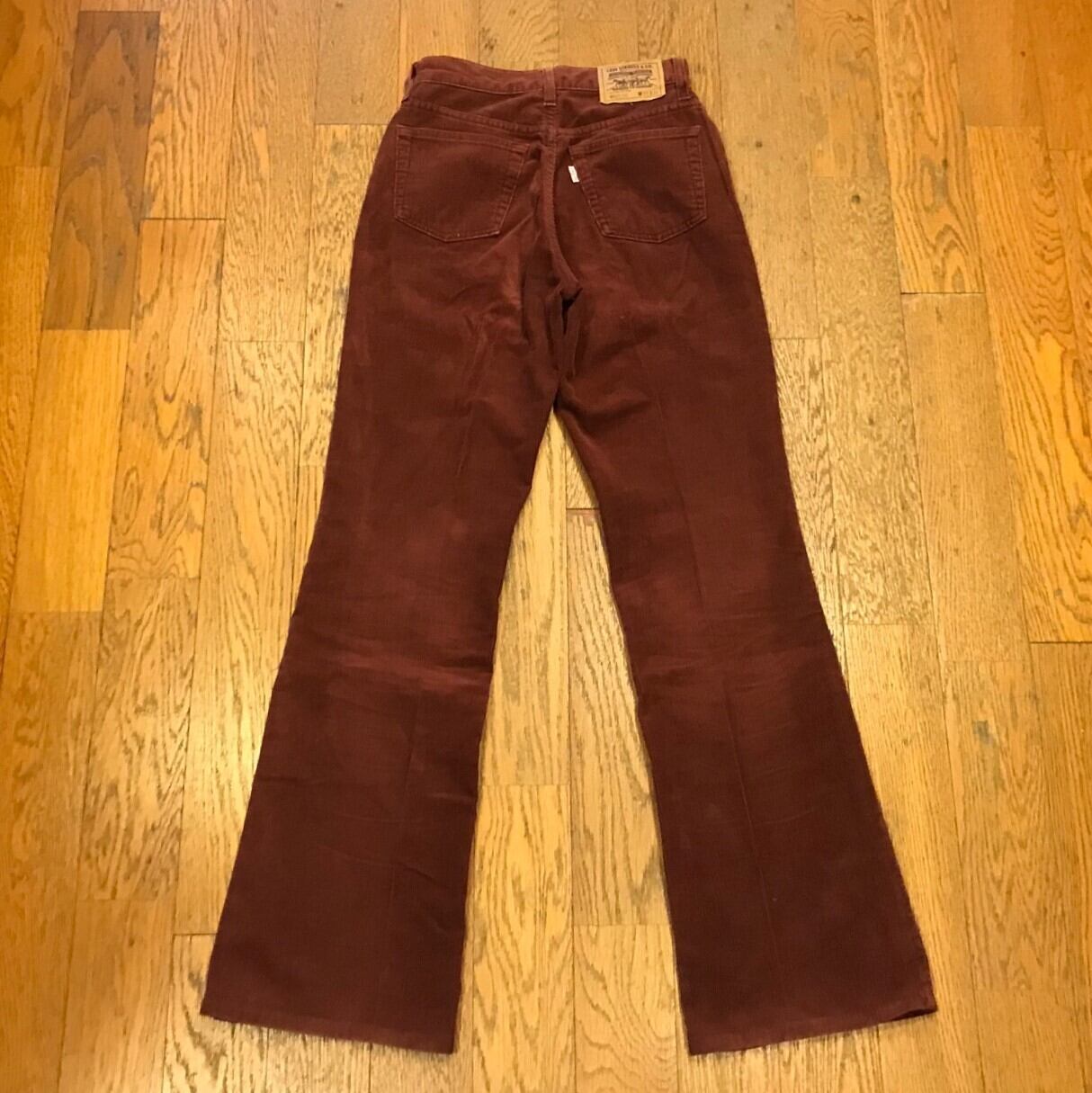 ■カラー:ワインレッド系 ■サイズ:表示 W27.L32(実寸ウエスト62cm、股下75cm、股上27cm、股幅27cm、裾幅22cm)多少の誤差はご了承ください。 ■素材:コットン93% ポリエステル7% ■原産国:JAPAN (リーバイ.ストラウスジャパン K.K.) ■コンディション:使用感はありますが、古着並で大きな汚れやダメージはありません。