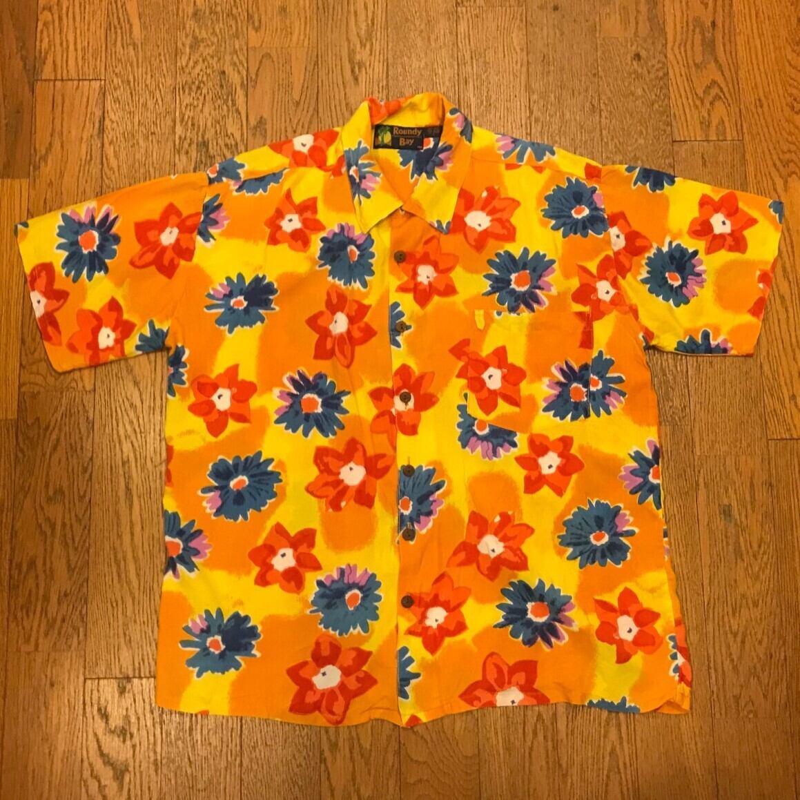 ループボタン付きです ! ■カラー:イエロー地に花柄 ■サイズ:表示 L(肩幅54cm、身幅65cm、着丈75cm、袖丈25cm)多少の誤差はご了承ください。 ■素材:レーヨン100% ■原産国:INDIA ■コンディション:古着並で大きな汚れやダメージはありません。