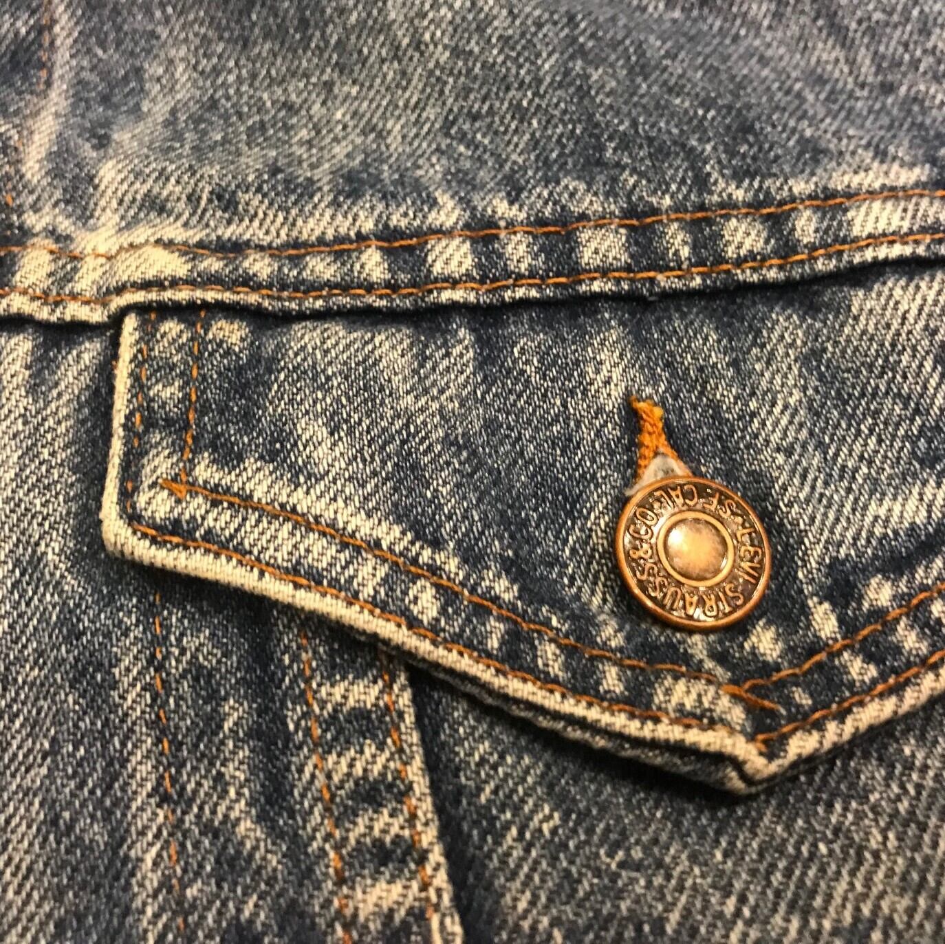 ■カラー:色落ちしたインディゴ ■サイズ:表示 38(肩幅44cm、身幅50cm、着丈57cm、袖丈59cm)多少の誤差はご了承ください。 ■素材:コットン100% ■原産国:U.S.A ■コンディション:画像のように赤タブがなく襟部分にダメージがありますが、他は古着並で大きな汚れやダメージはありません。