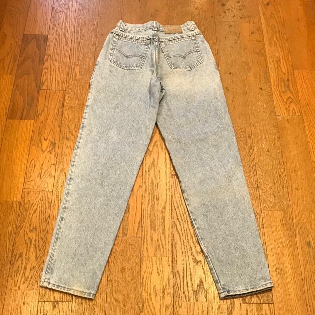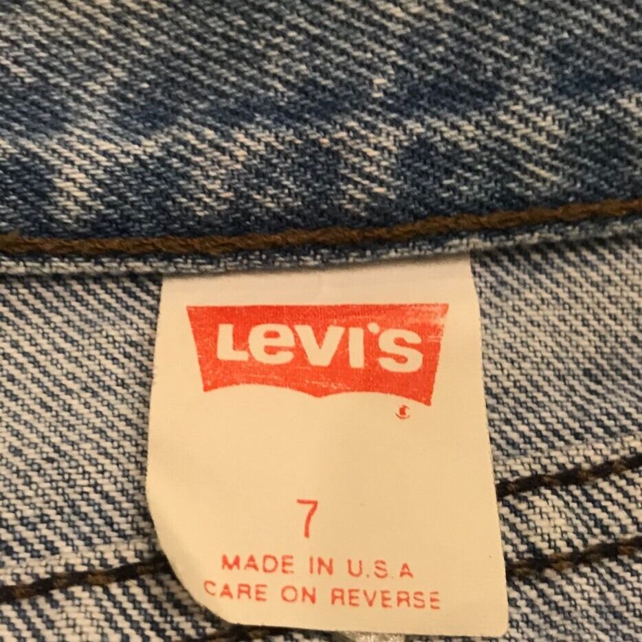 ■カラー:薄いブルー ■サイズ:表示 7(実寸ウエスト62cm、股下77cm、股上29cm、股幅29cm、裾幅15cm)多少の誤差はご了承ください。 ■素材:コットン100% ■原産国:U.S.A ■コンディション:古着並で目に付く汚れやダメージはありません。