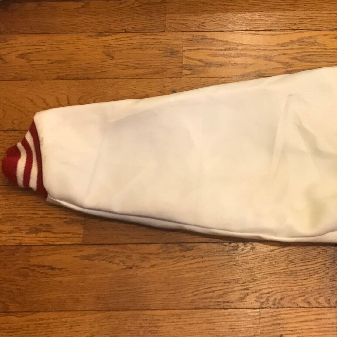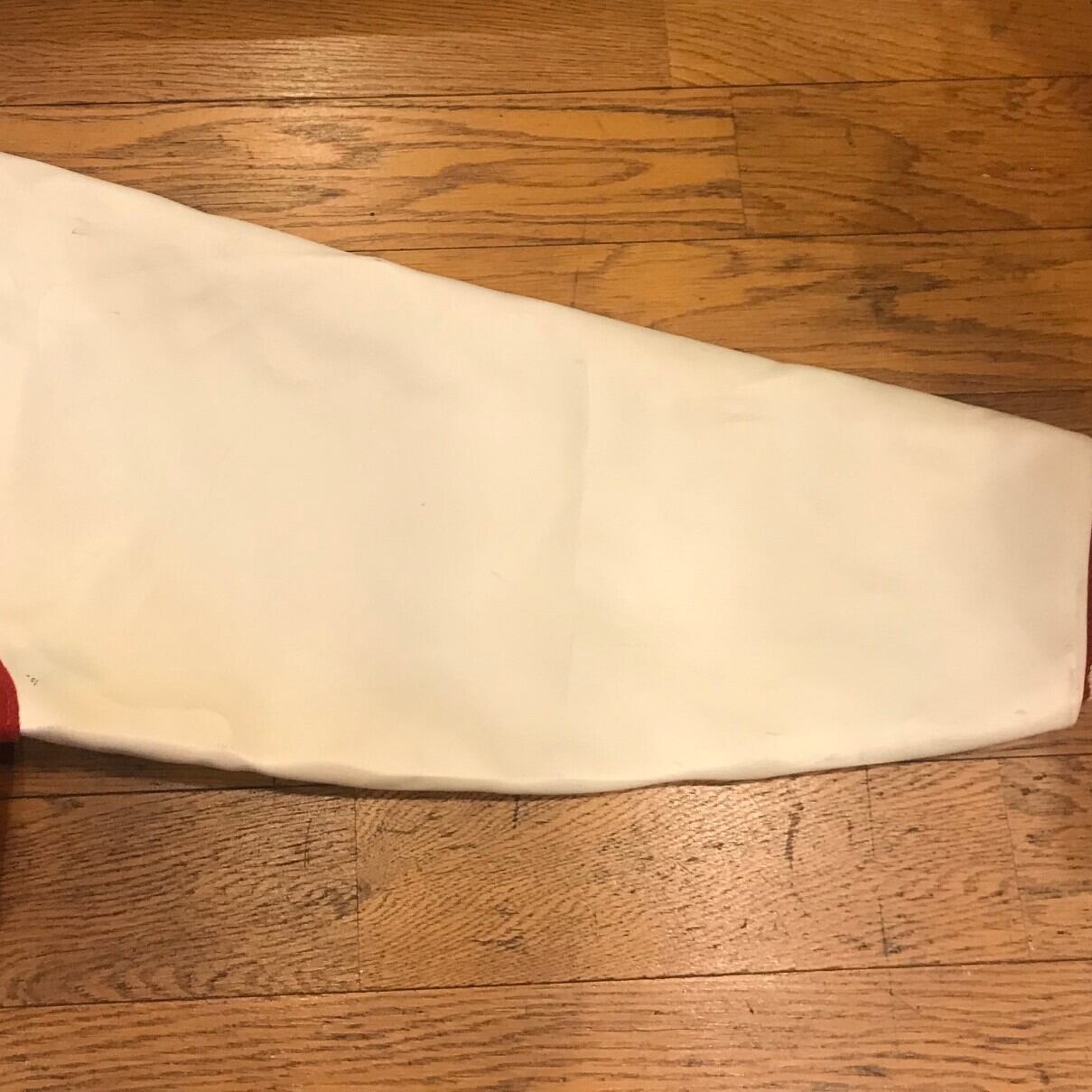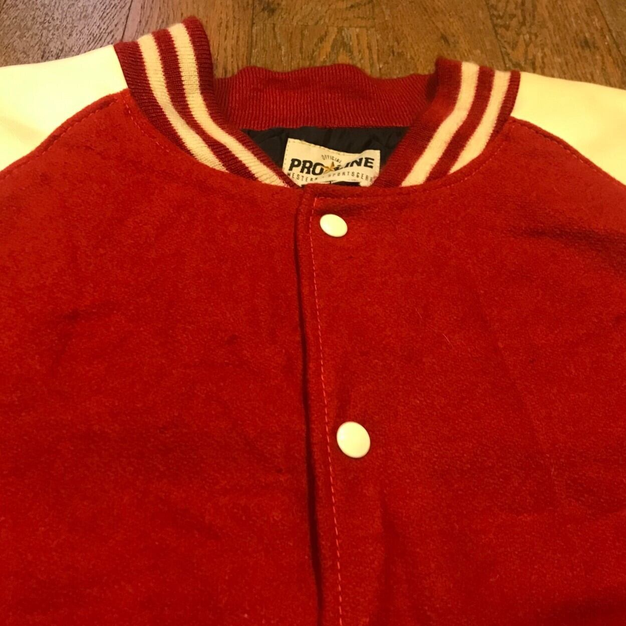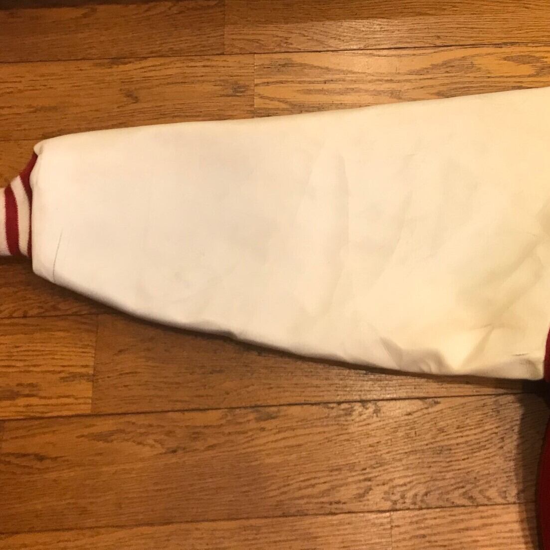 ■カラー:レッド 袖ホワイト ■サイズ:表示 XXXL(肩幅59cm、身幅70cm、着丈75cm、袖丈53cm(ラグランスリーブの為、わきの下から袖口までの長さ))多少の誤差はご了承ください。 ■素材:表記はありませんが本体はウール、袖は合皮だと思われます。 ■原産国:U.S.A ■コンディション:袖に画像のような汚れ箇所がありますが、他は古着並で大きな汚れやダメージはありません。