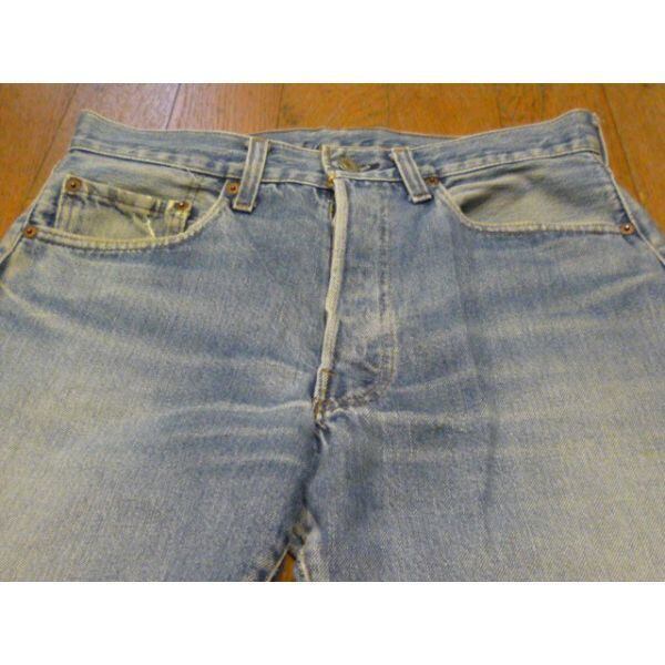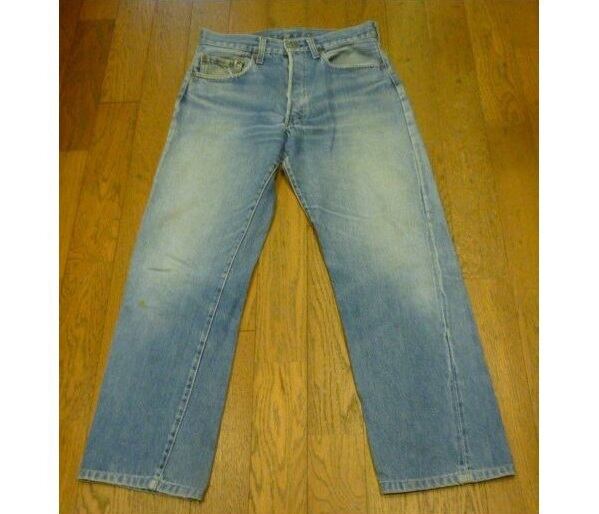 耳付き、ヒゲ落ちです!! リーバイス501 ■カラー:薄いブルー ■サイズ:表示 パッチなし(実寸ウエスト80cm、股下74cm、股上29cm、股幅30cm、裾幅29cm)多少の誤差はご了承ください。 ■素材:コットン100% ■原産国:U.S.A ■コンディション:古着並で目に付く汚れやダメージはありません。