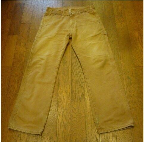 人気てす!!ディッキーズのキャメルぺインターパンツ ■カラー:キャメル ■サイズ:表示 W32.L32(実寸ウエスト84cm、股下81cm、股上28cm、股幅30cm、裾幅22cm)多少の誤差はご了承ください。 ■素材:コットン100% ■原産国:MEXICO ■コンディション:左足内腿付近に画像のようなシミがありますが、他は古着並で大きな汚れやダメージはありません。