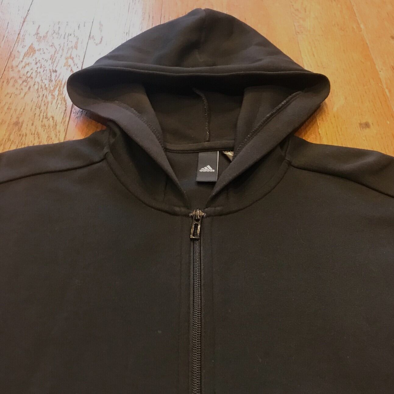 ■カラー:ブラック ■サイズ:表示 M(肩幅57cm、身幅56cm、着丈60cm、袖丈55cm)多少の誤差はご了承ください。 ■素材:コットン67% ポリエステル33% ■原産国:ベトナム (アディダスジャパン株式会社) ■コンディション:古着並で目に付く汚れやダメージはありません。