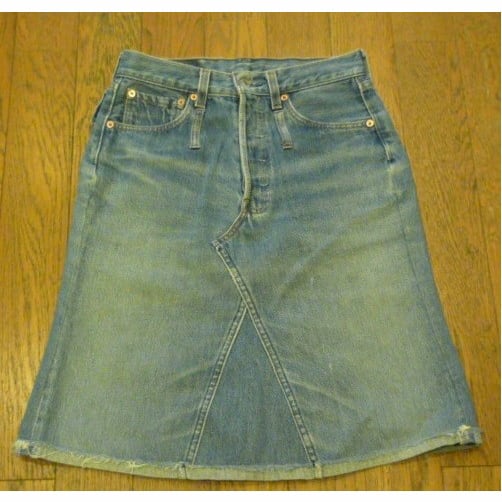 カワイイです!! リーバイス501をリメイクしたデニムスカート ■カラー:ブルー ■サイズ:表示 29(実寸ウエスト70cm、総丈56cm、ヒップ90cm、裾幅55cm、スリットなし)多少の誤差はご了承ください。 ■素材:コットン100% ■原産国:U.S.A ■コンディション:良好