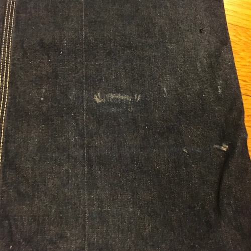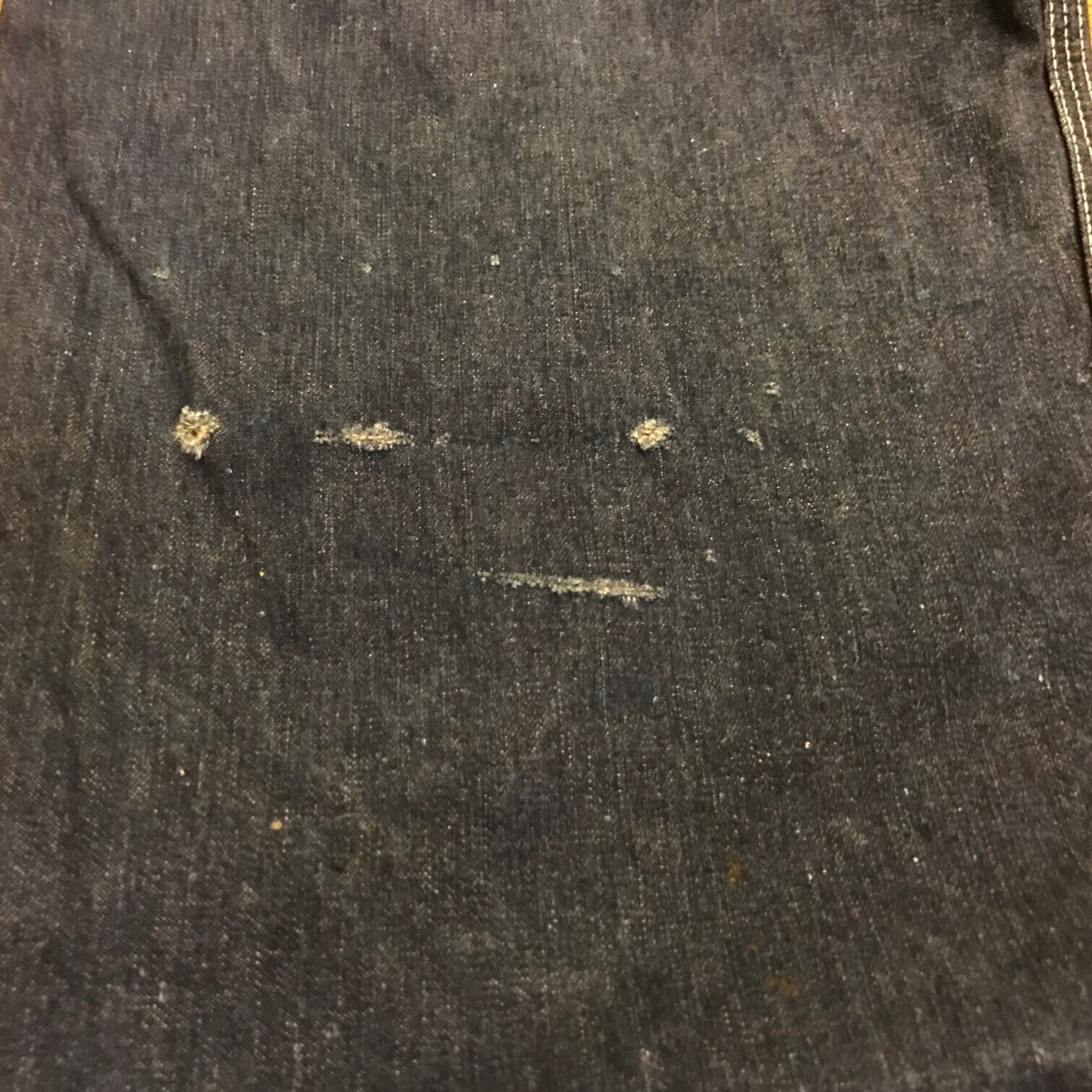 ■コンディション:1.画像のように左ポケット付近、両裾上付近に汚れ、ダメージ、リペア箇所があります。2.数点糸切れ箇所があります。他は古着並で大きな汚れやダメージはありません。
