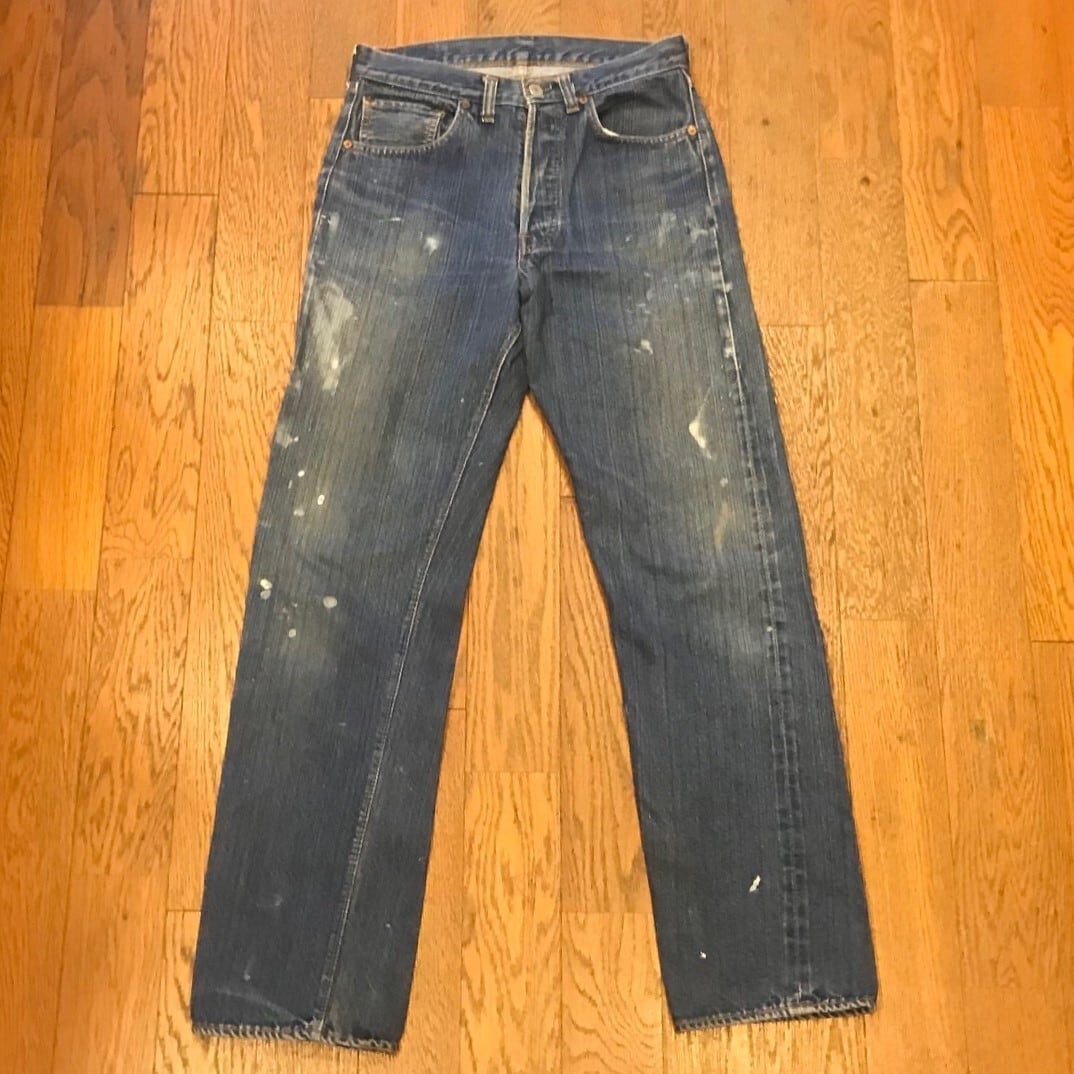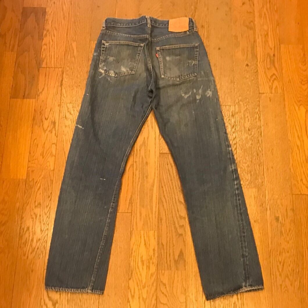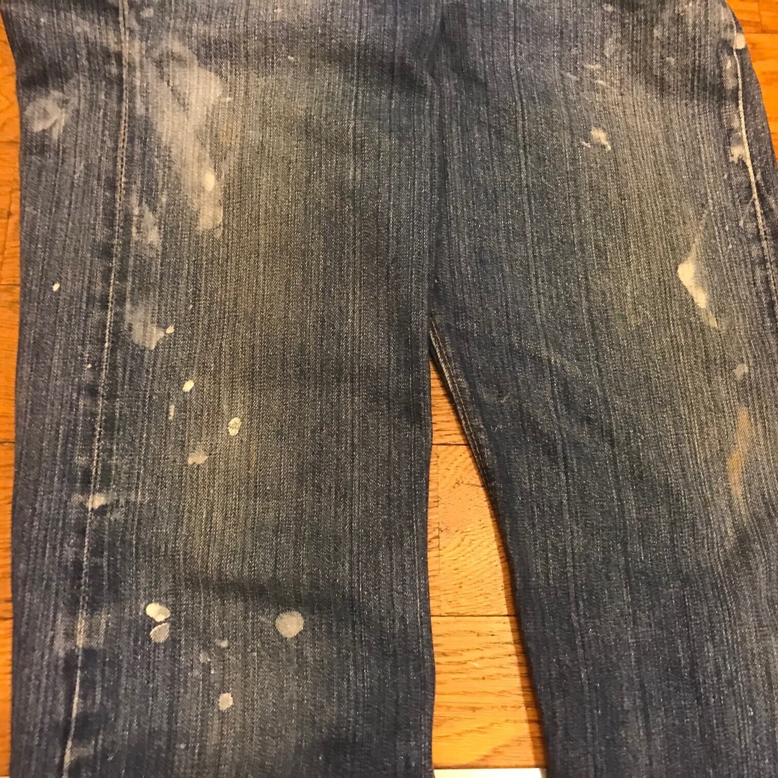 ■カラー:縦落ちインディゴ ■サイズ:表示 W30.L34(実寸ウエスト72cm、股下77cm、股上28cm、股幅29cm、裾幅18.5cm)多少の誤差はご了承ください。 ■素材:コットン100% ■原産国:U.S.A ■コンディション:画像のようにペンキ汚れがありますが大きなダメージはありません。