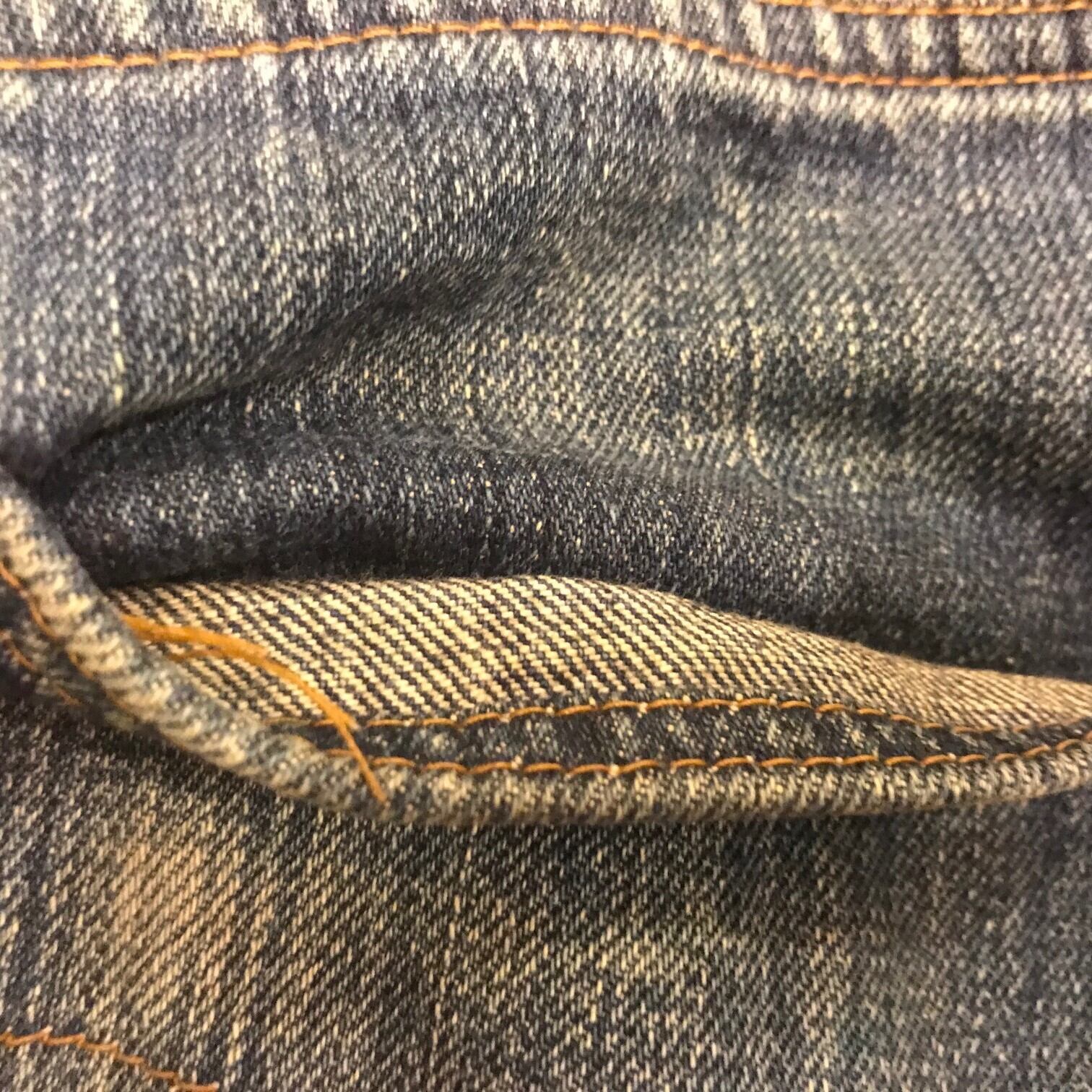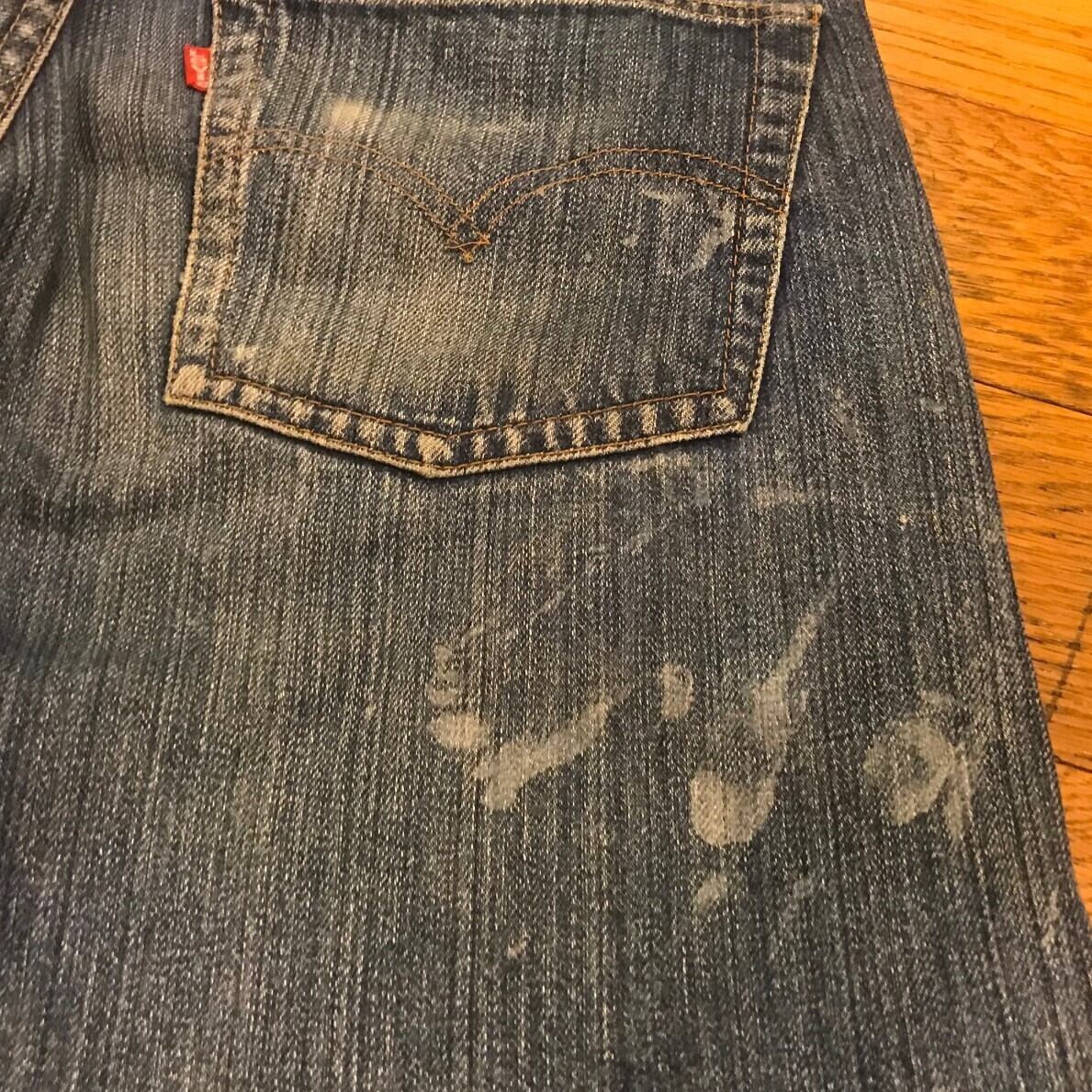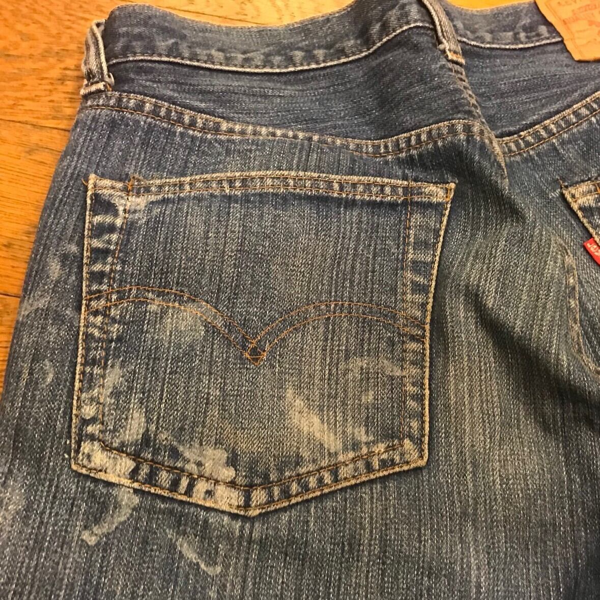 ■カラー:縦落ちインディゴ ■サイズ:表示 W30.L34(実寸ウエスト72cm、股下77cm、股上28cm、股幅29cm、裾幅18.5cm)多少の誤差はご了承ください。 ■素材:コットン100% ■原産国:U.S.A ■コンディション:画像のようにペンキ汚れがありますが大きなダメージはありません。