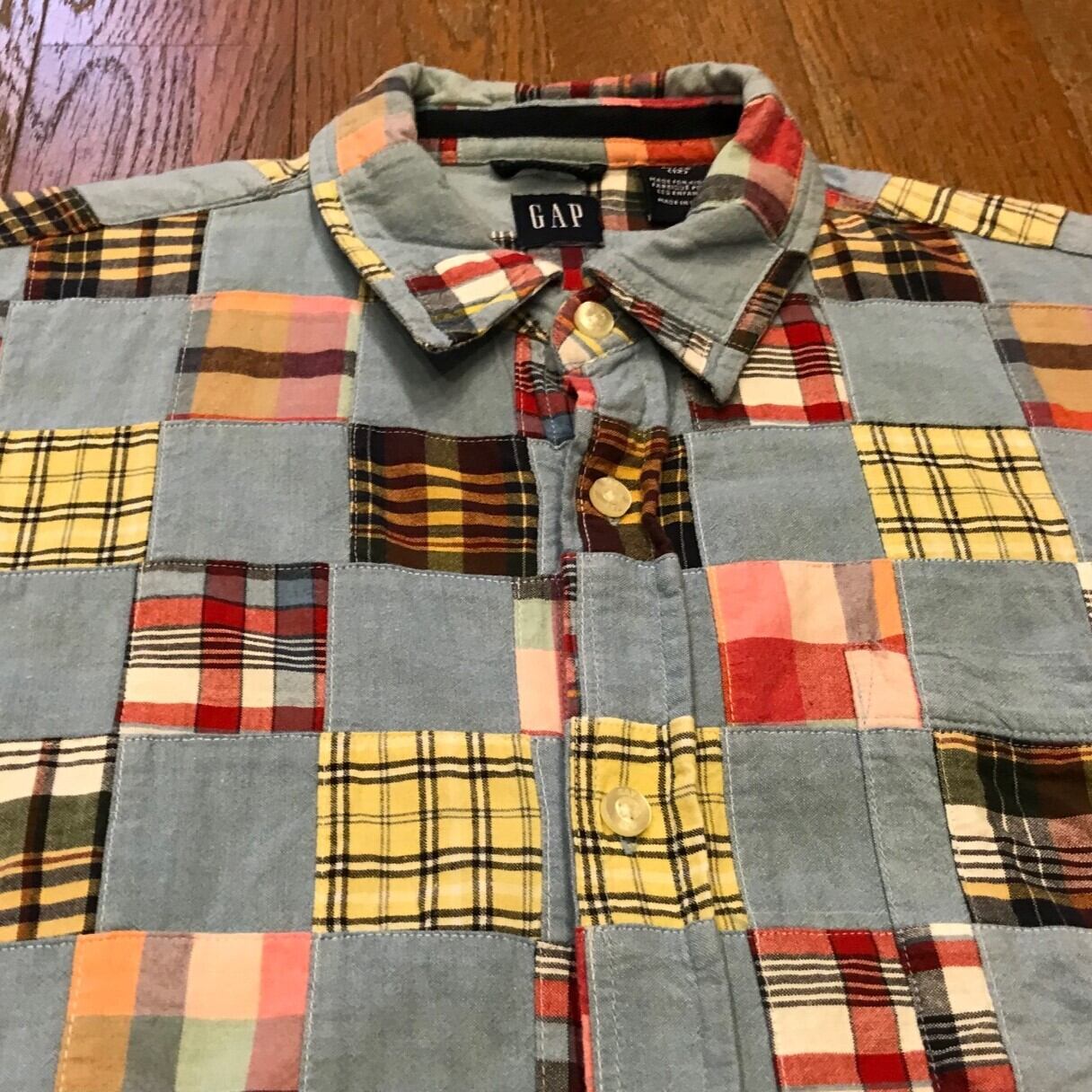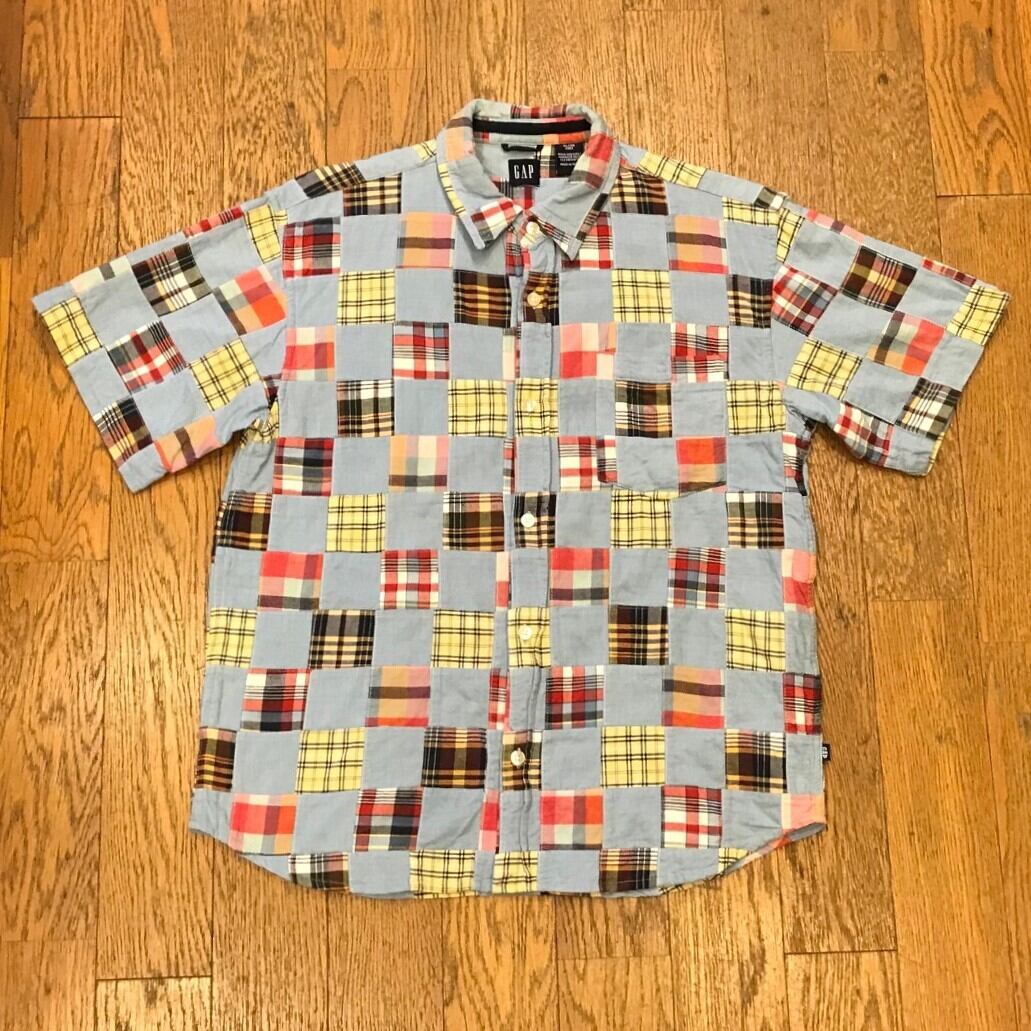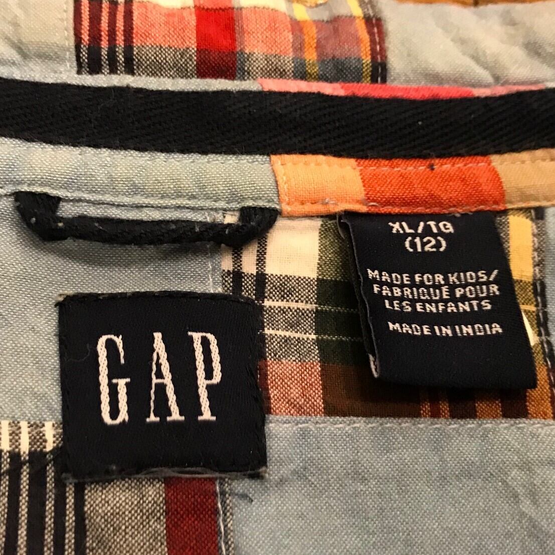 ■カラー:スカイブルーとチェックのパッチワーク ■サイズ:表示 XL/TG (12)(肩幅46cm、身幅50cm、着丈65cm、袖丈22cm、首周り39cm)多少の誤差はご了承ください。 ■素材:コットン100% ■原産国:INDIA ■コンディション:古着並で目に付く汚れやダメージはありません。