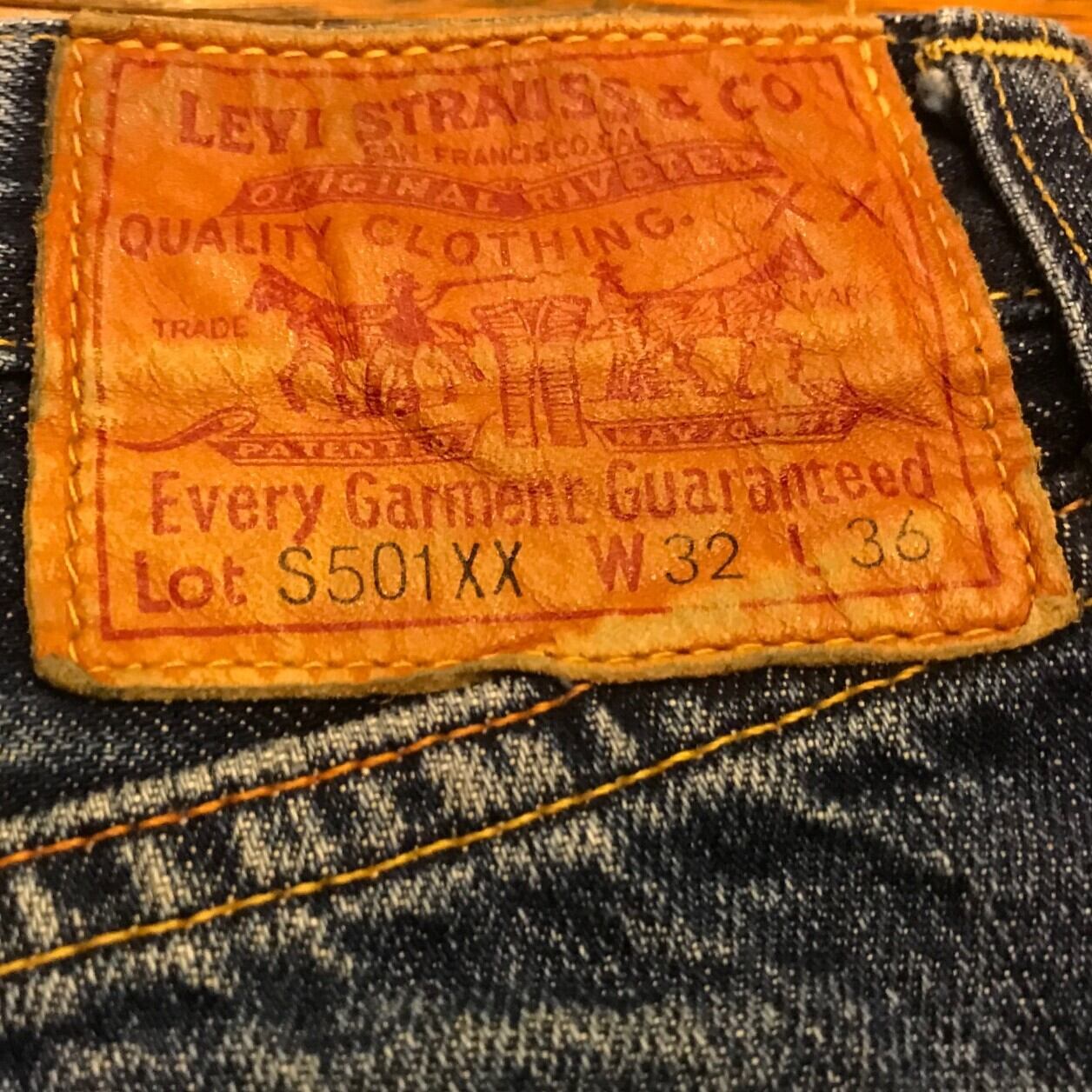 ■カラー:中間ぐらいの色落ちのインディゴ ■サイズ:表示 W32.L36(実寸ウエスト78cm、股下75cm、股上31cm、股幅29cm、裾幅20cm)多少の誤差はご了承ください。 ■素材:コットン100% ■原産国:U.S.A (リーバイ.ストラウスジャパン K.K.) ■コンディション:画像のようにペンキステッチがかなり薄れて両かかと部分に擦り切れ箇所がありますが、他は古着並で大きな汚れやダメージはありません。